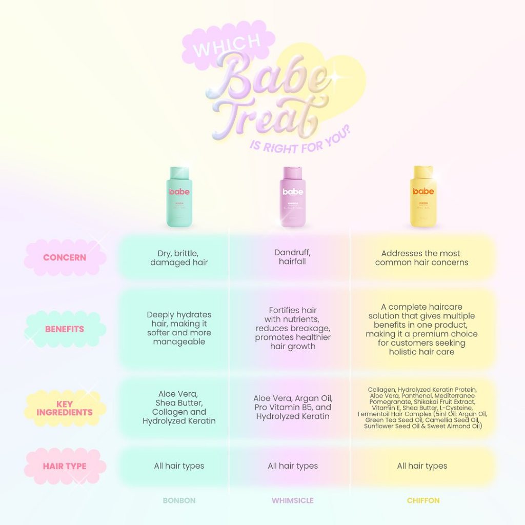 BABE FORMULA HAIR CARE SULFATE-FREE (BONBON, WHIMSICLE, CHIFFON, JOOZIE, AVO HAIR MASQUE MOONBEAM)