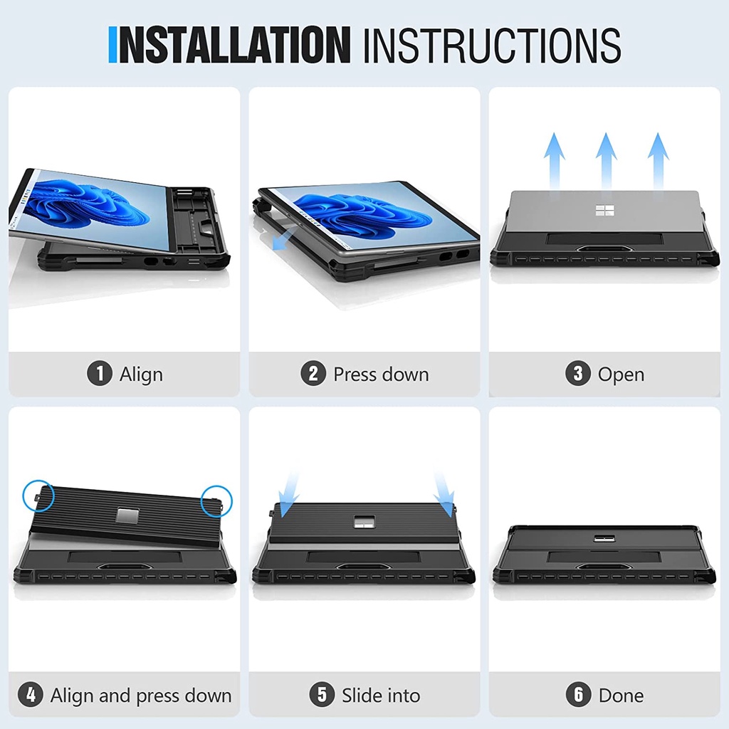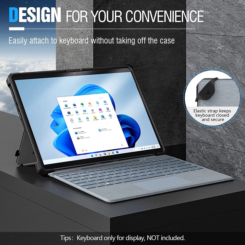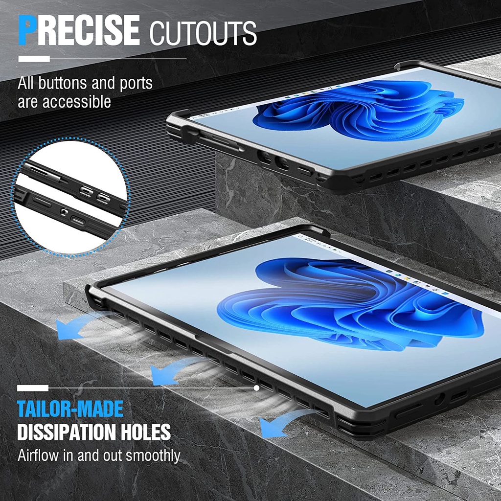 Rugged Hard Case Kickstand Cover with Hand Strap for Surface Pro 10 / Pro 9 & Pro 8 13-inch