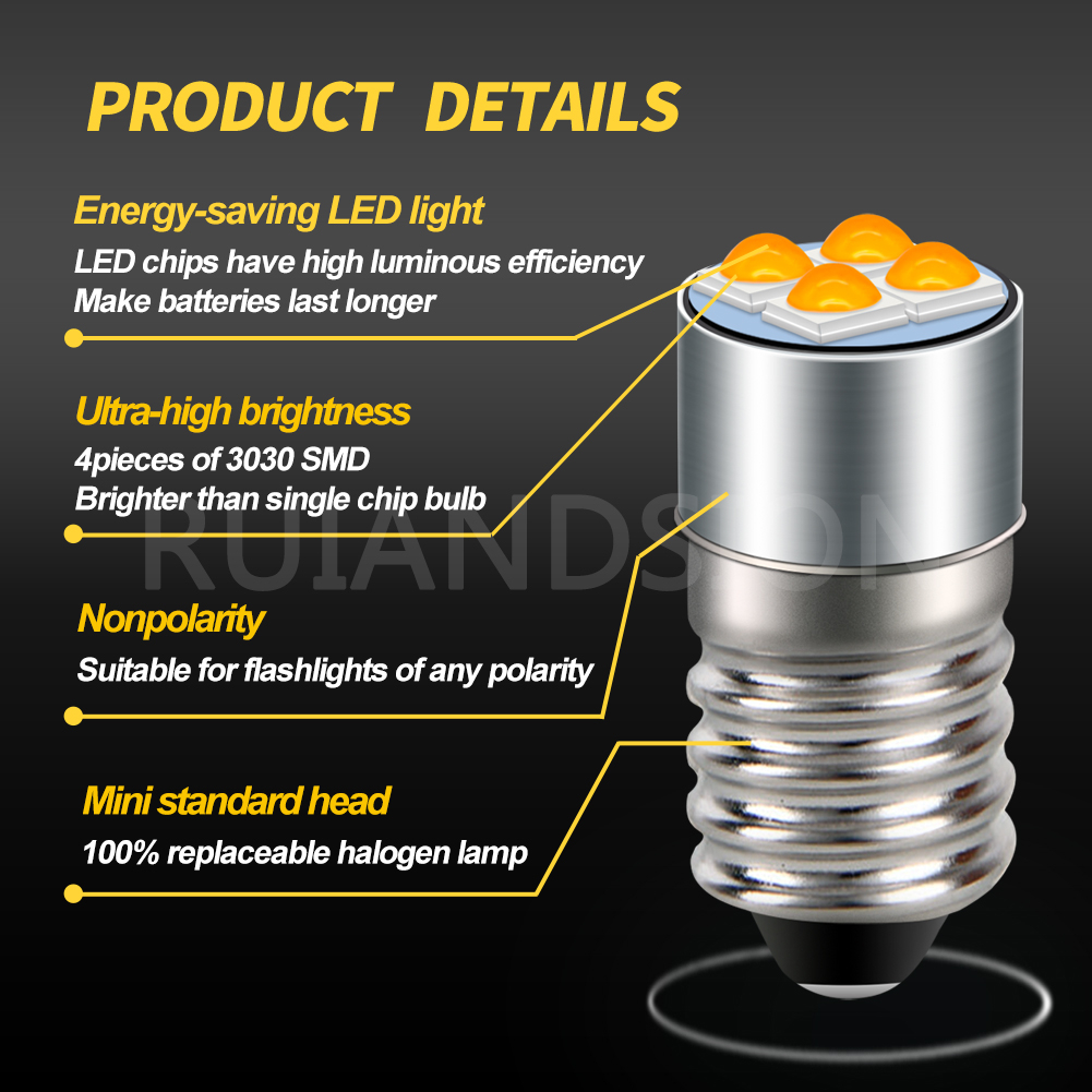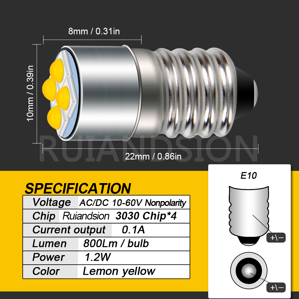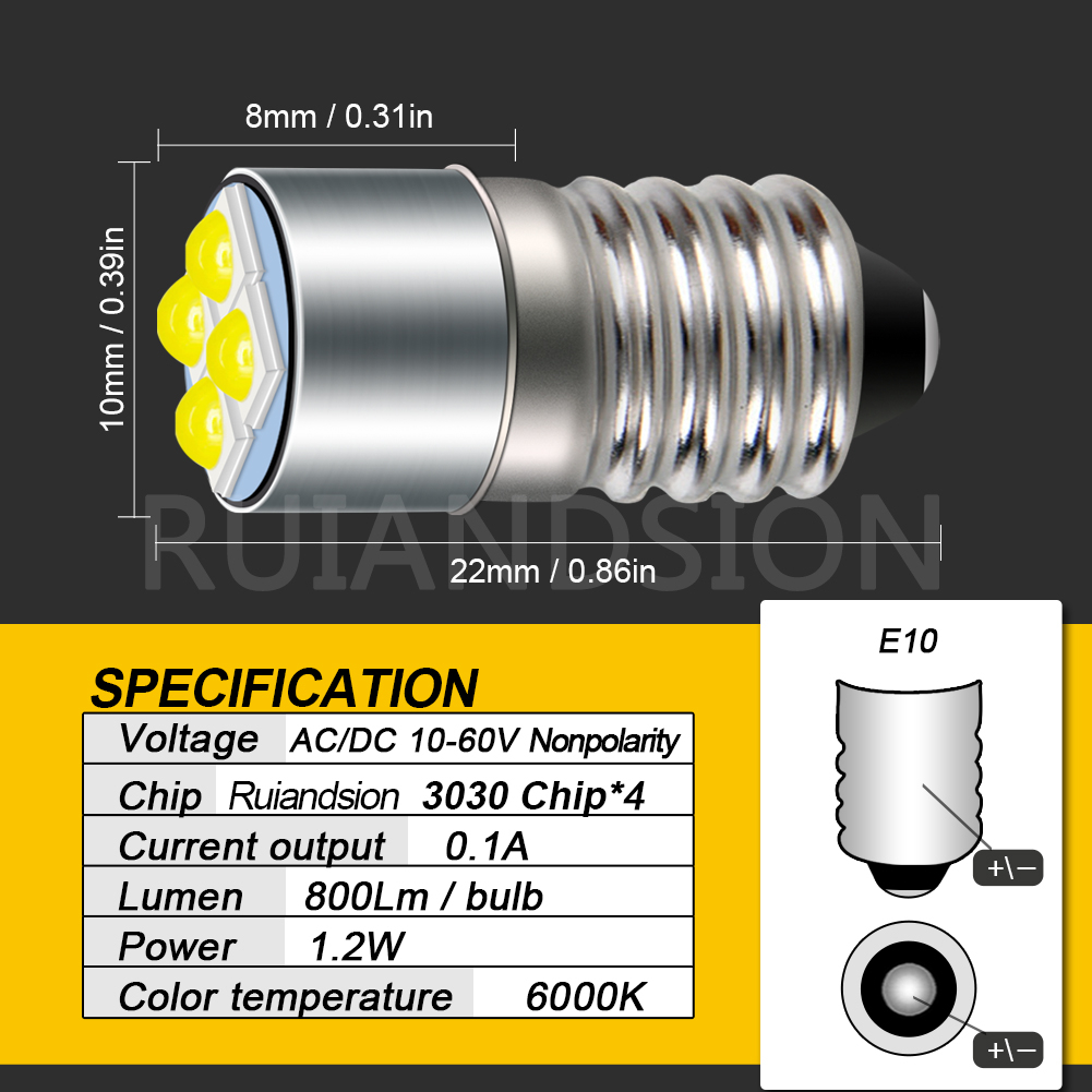 Ruiandsion 10-60V P13.5S E10 LED Bulb Miniature Indicator Light Bulbs Upgrade for Headlamps Flashlights Bike Work Lights Microscope Lamp