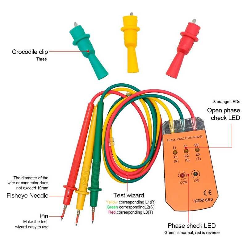 RuoShui 850 Professional Phase Sequence Meter - 3-Phase 200-600V AC Rotation Tester with LED Display