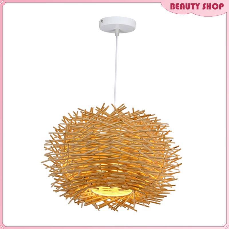 Rustic Lantern Pendant Lighting Rattan Single Light Weaving Natural Wooden Ceiling Hanging Light Ceiling Fixture with Adjustable Cord for Dining Room