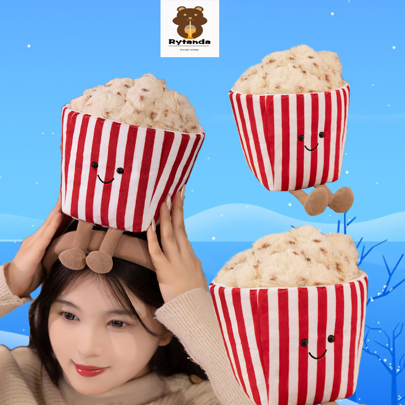 Rytanda Popcorn Plush Toy Cute Simulation Popcorn Food Pillow Soft Filling Sofa Cushion Girl Birthday Gift Home Decoration Christmas Gift