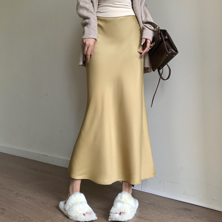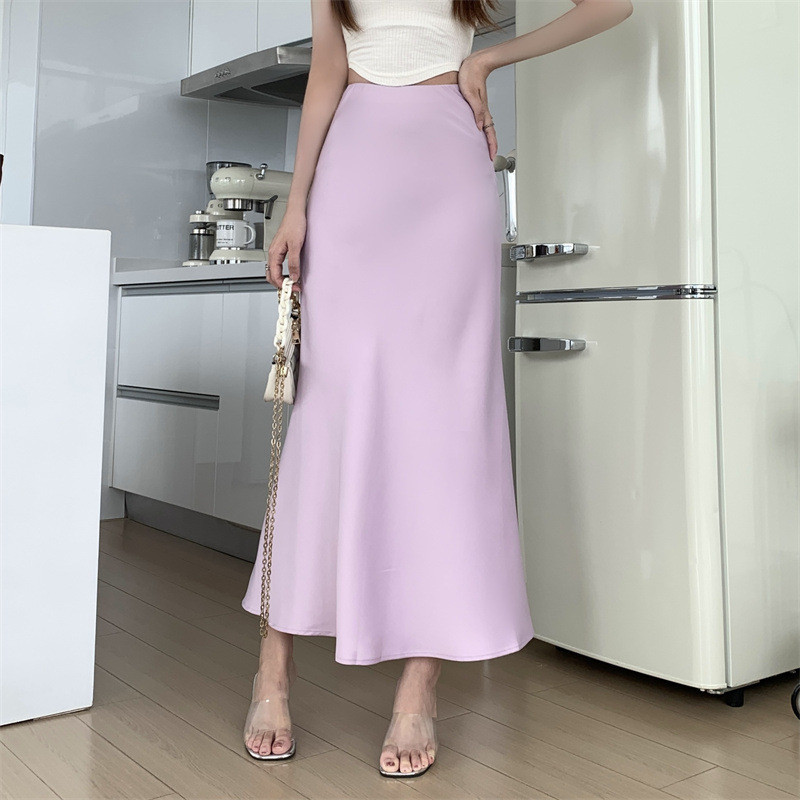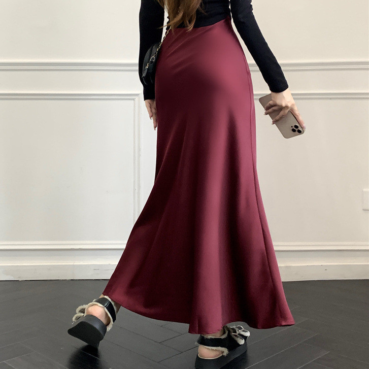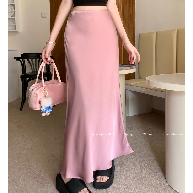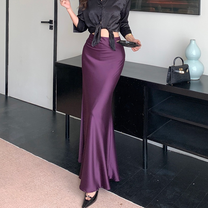 S-6XL Korean Casual A-line Satin Palda Mermaid Wrap Long Skirt for Woman Highwaist No Slit