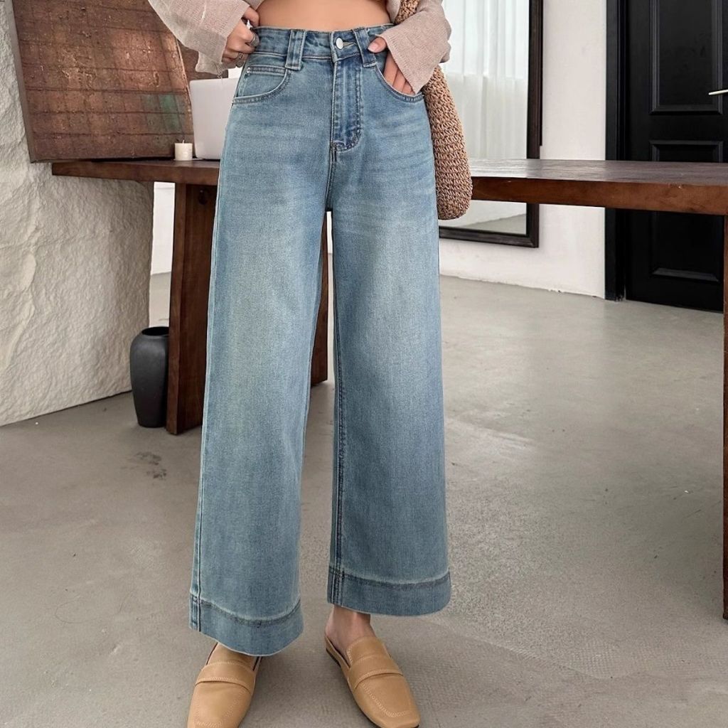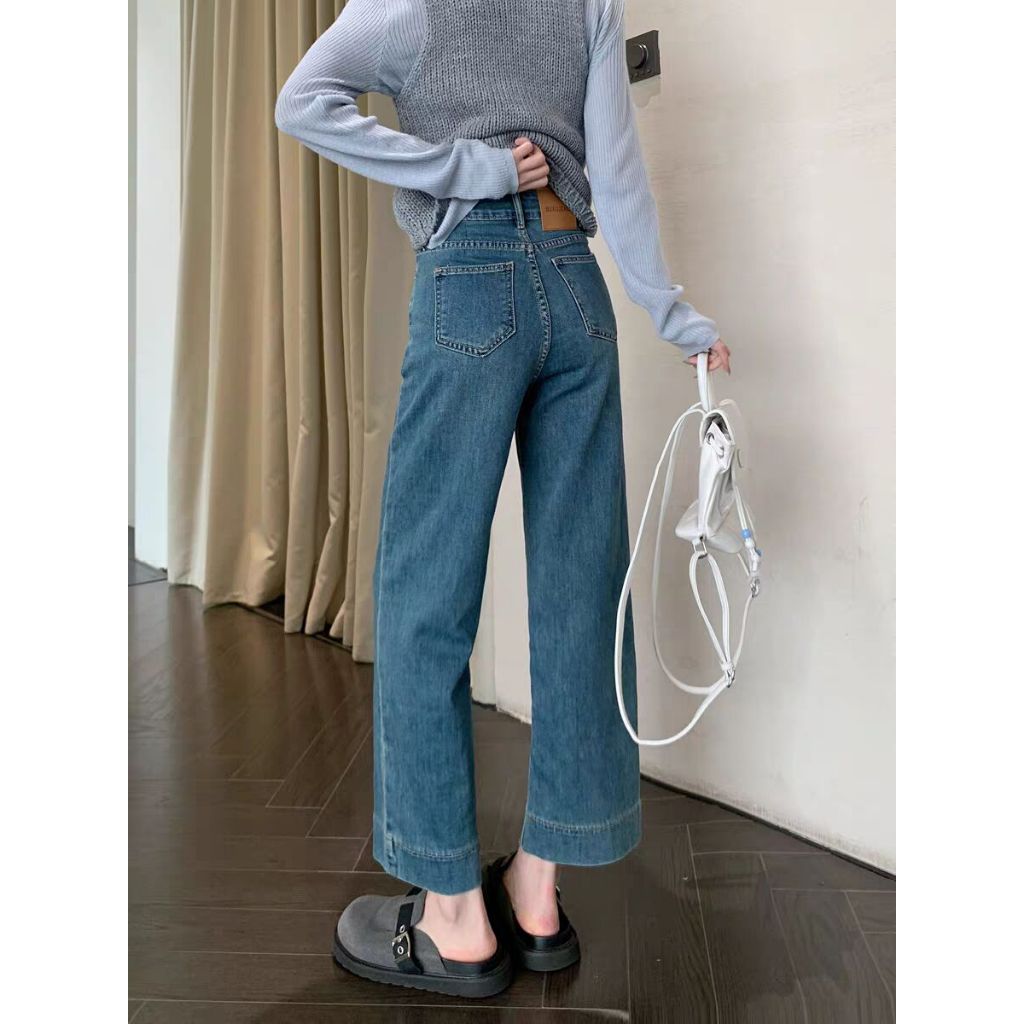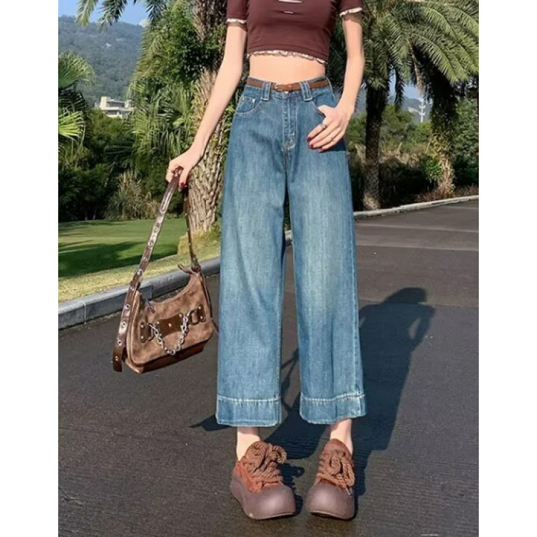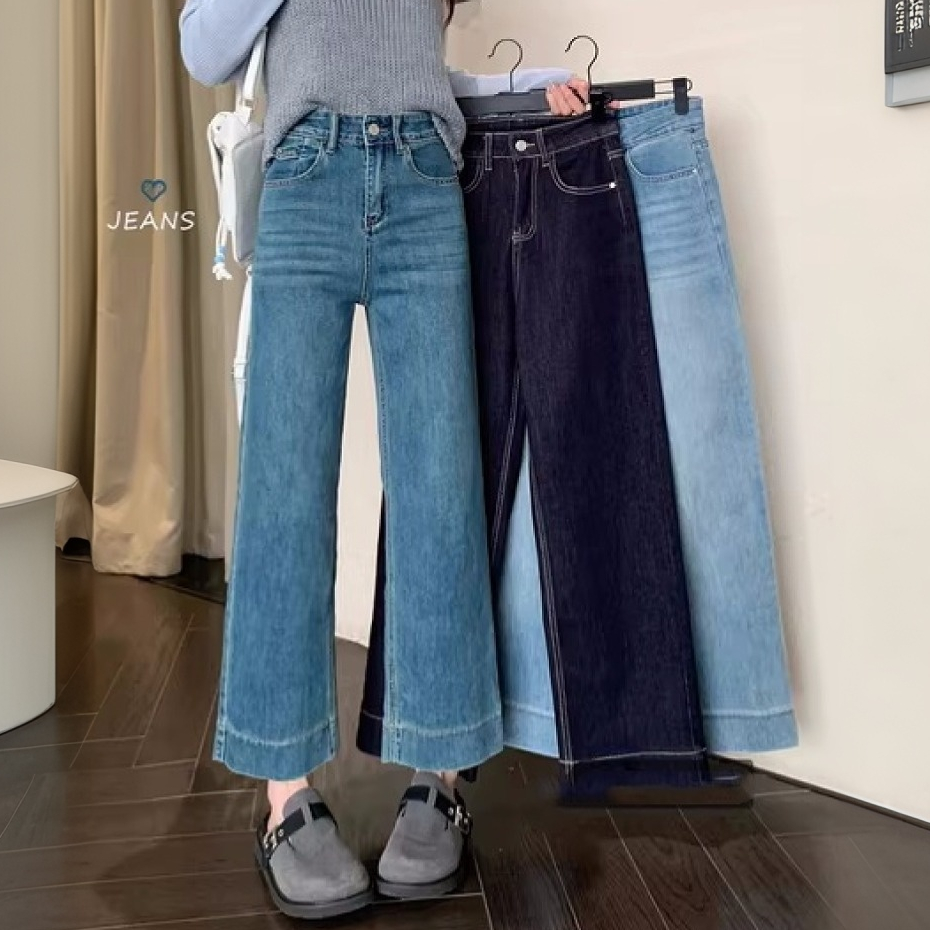 S-7XL High Waist Straight Leg Denim Trouser Pants Ankle Length Jeans