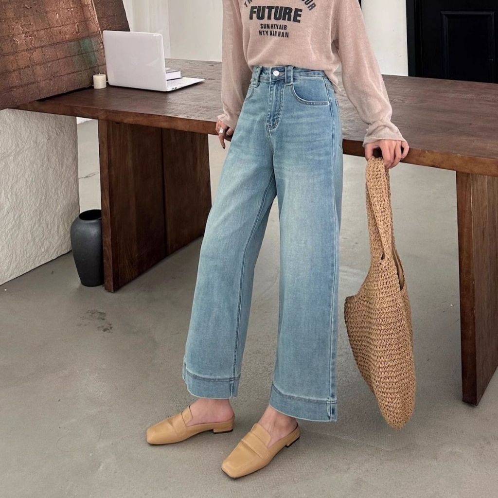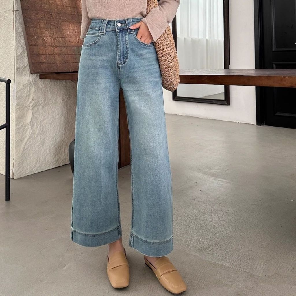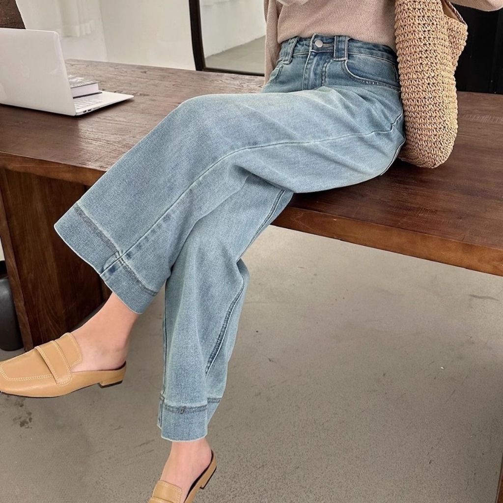 S-7XL High Waist Straight Leg Denim Trouser Pants Ankle Length Jeans