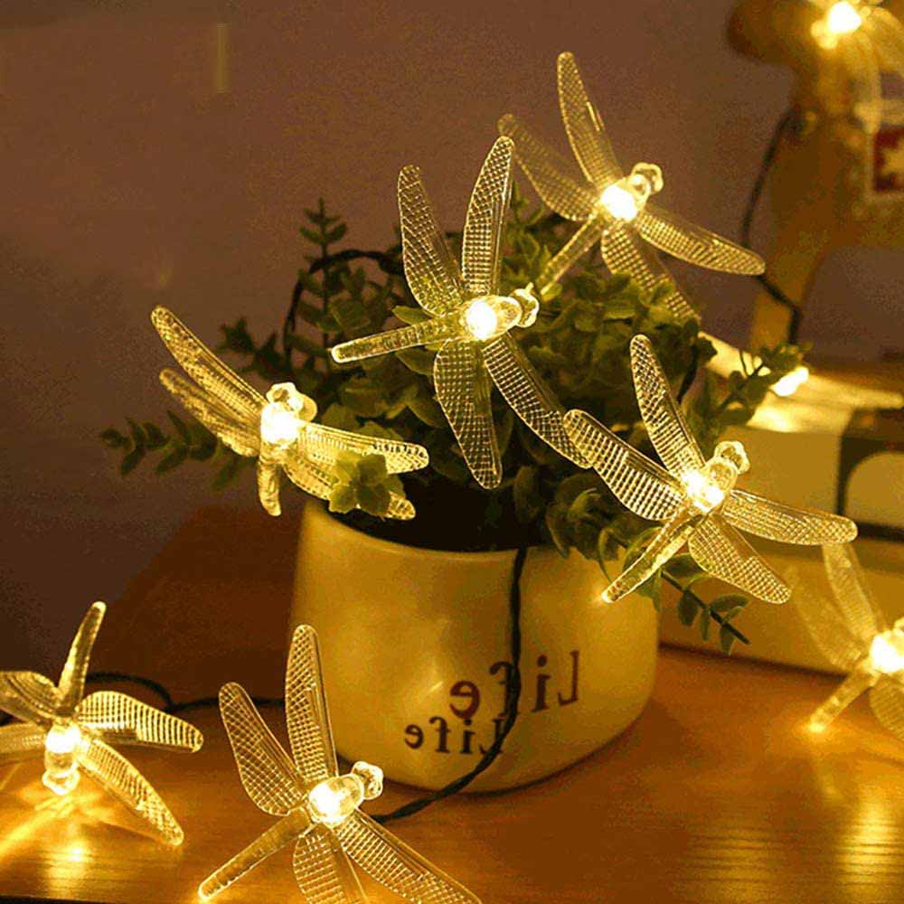 S&C Dragonfly Solar String Lights Outdoor 20 Led Waterproof Solar Powered Fairy Lights