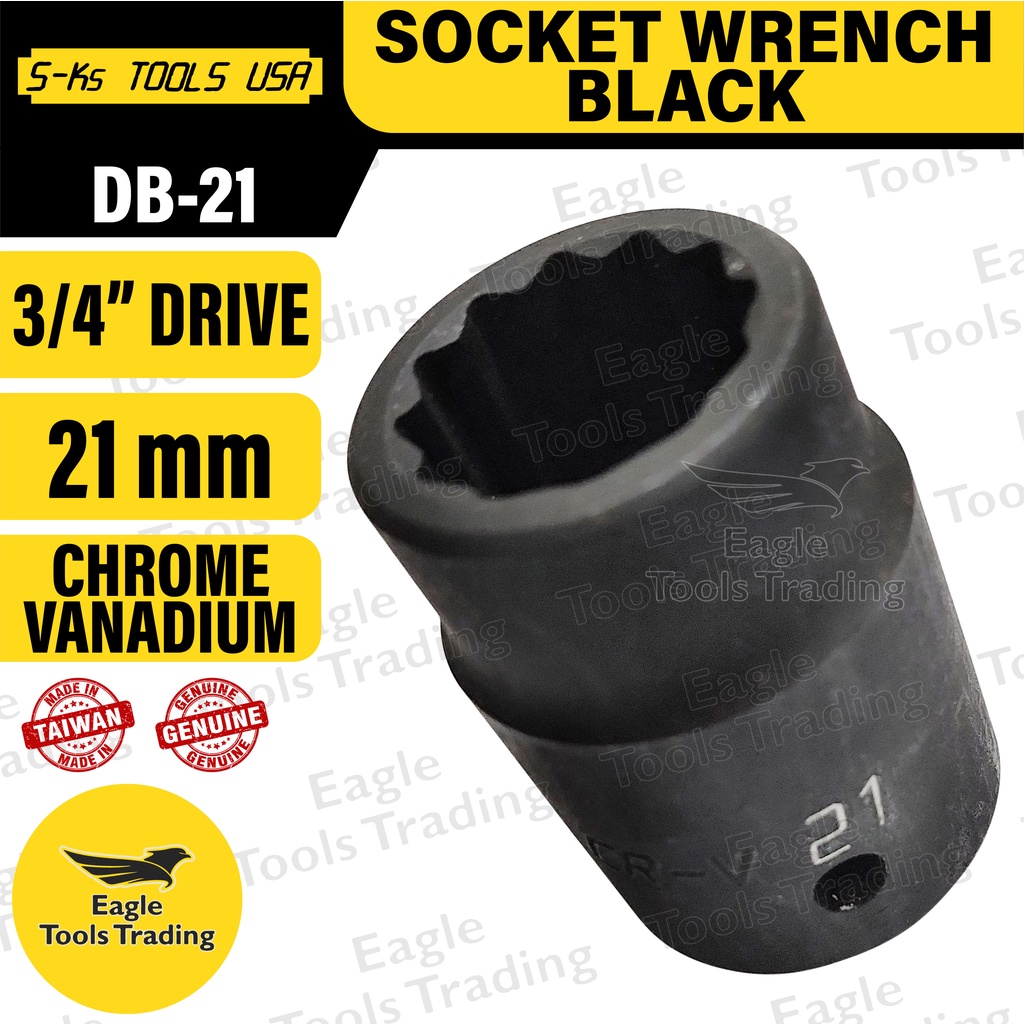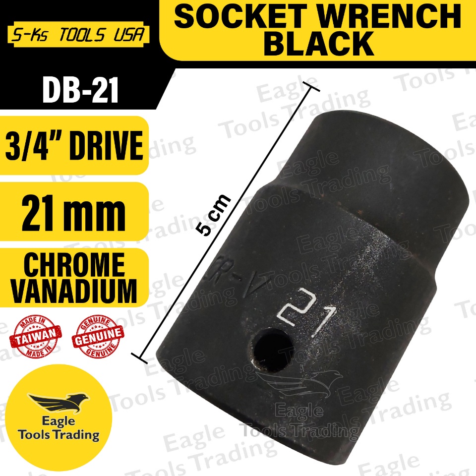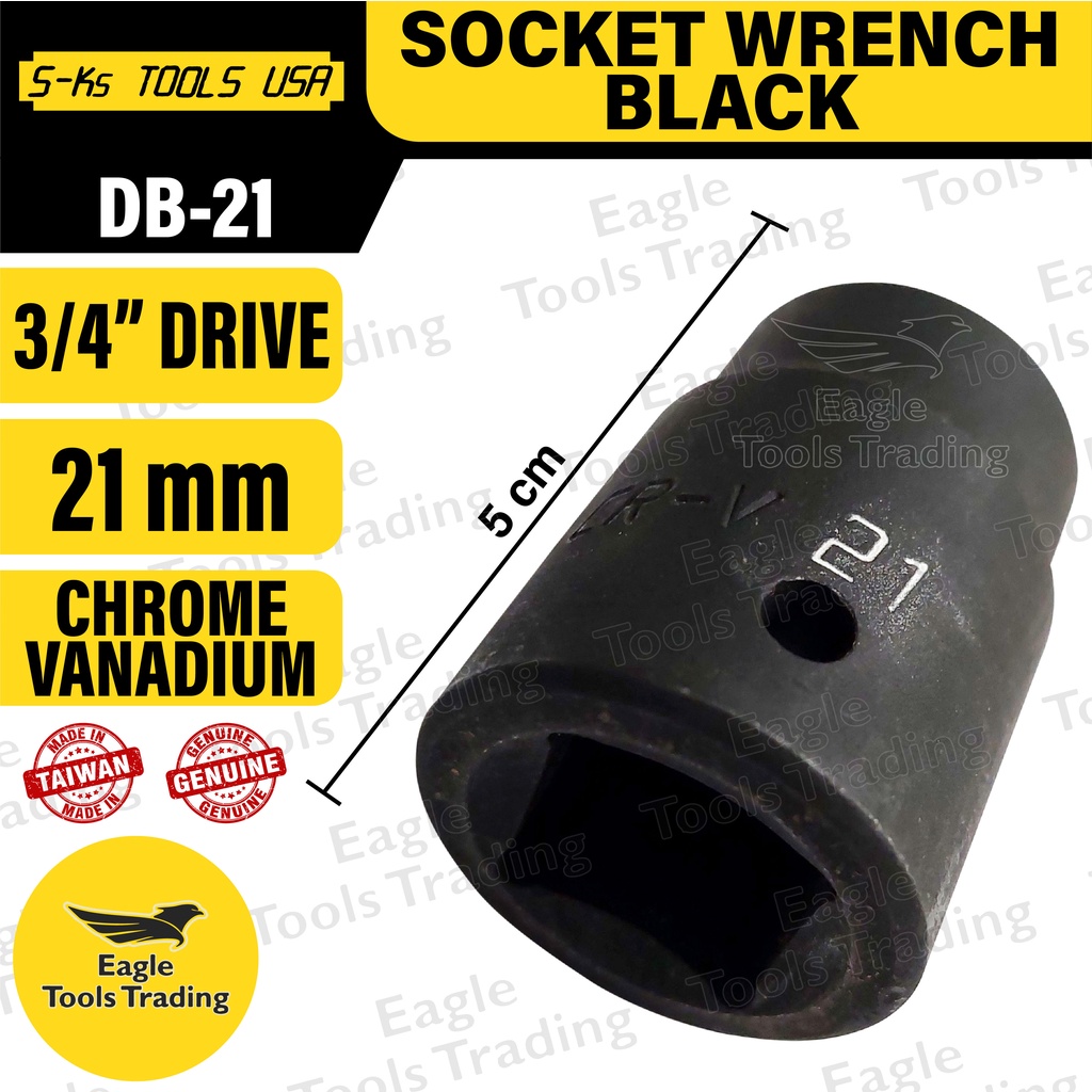 S-Ks Tools USA 3/4 inch Drive 21mm Socket Wrench Black | Chrome Vanadium | DB-21