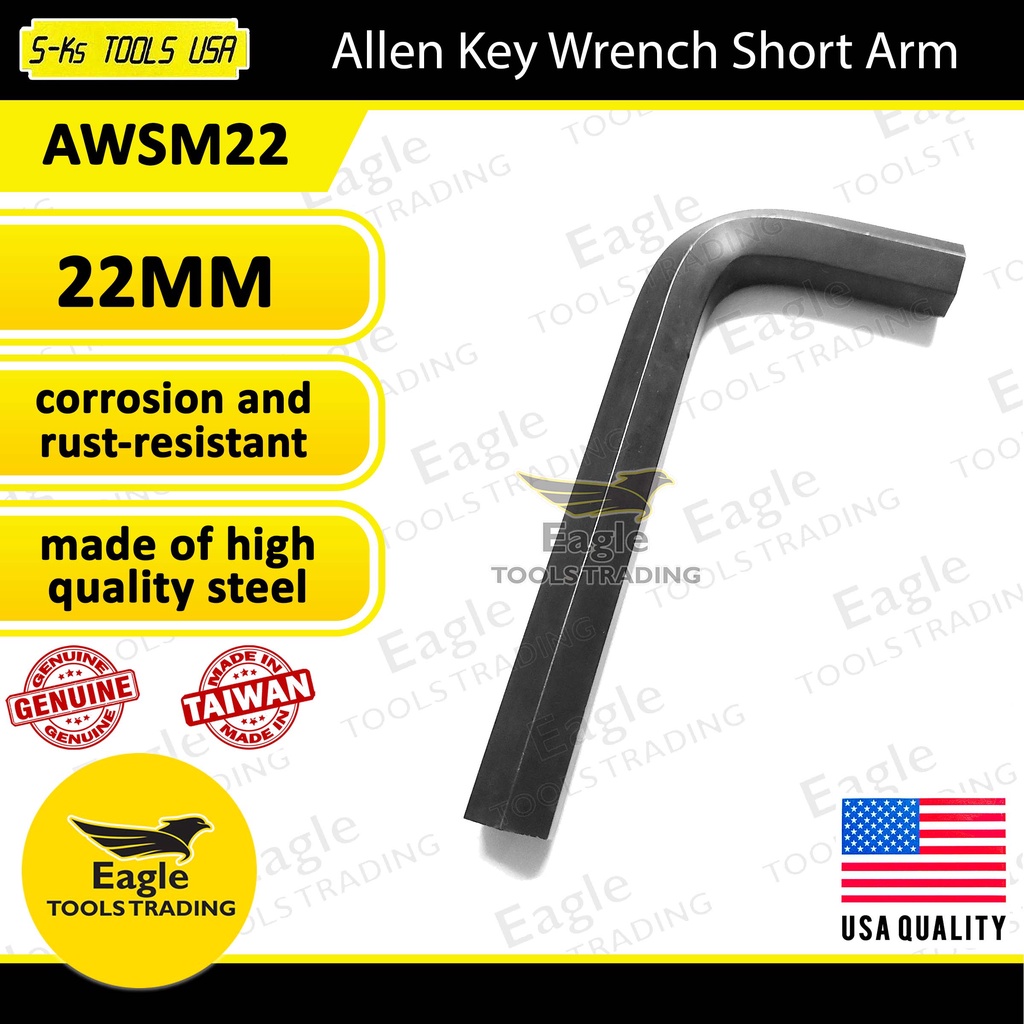 S-Ks Tools USA Allen Key Wrench 22mm Short Arm Hex Key AWSM22