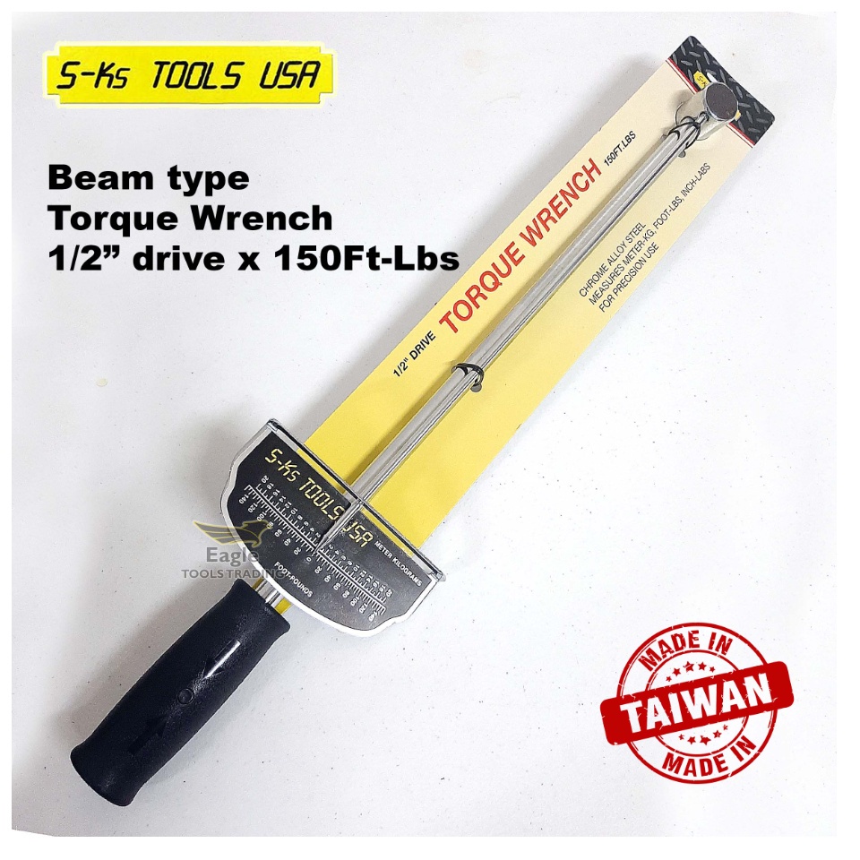 S-ks Tools USA 1/2" drive x 150 Ft-lbs Beam Type Torque Wrench w/ 5 in extension bar 48cm long