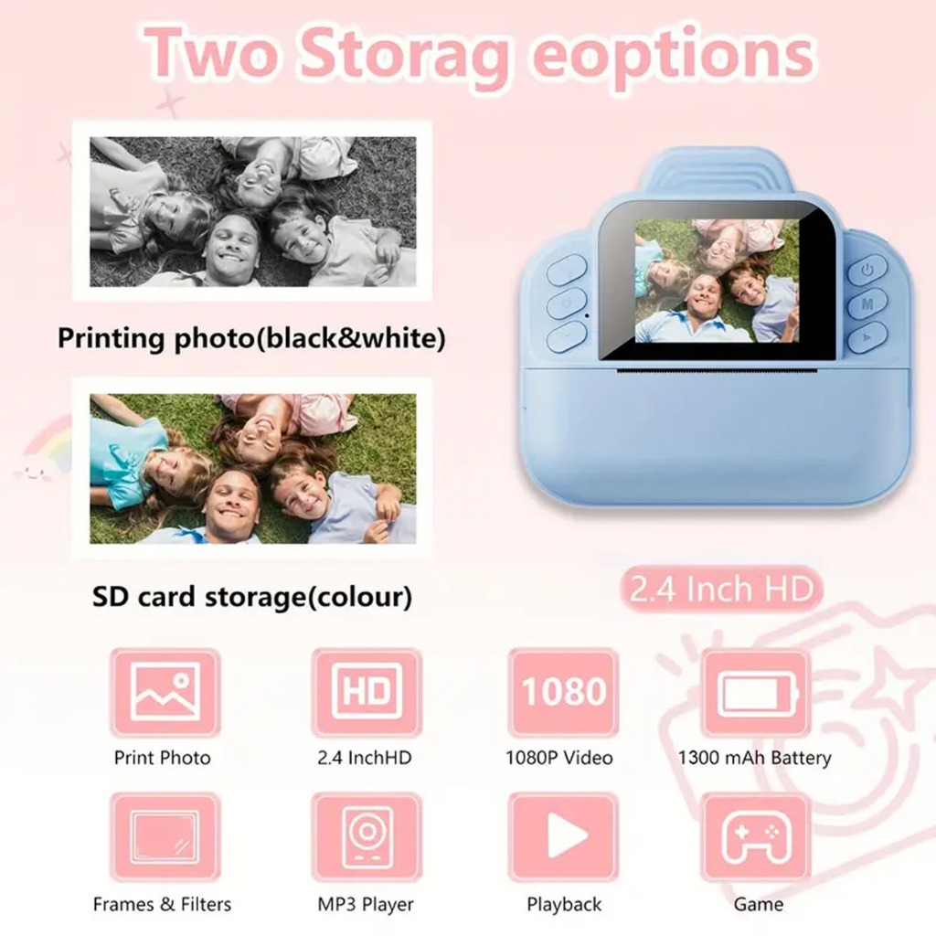 S9 2.4 Inch Kids Instant Print Camera Thermal Printer HD Video Recorder