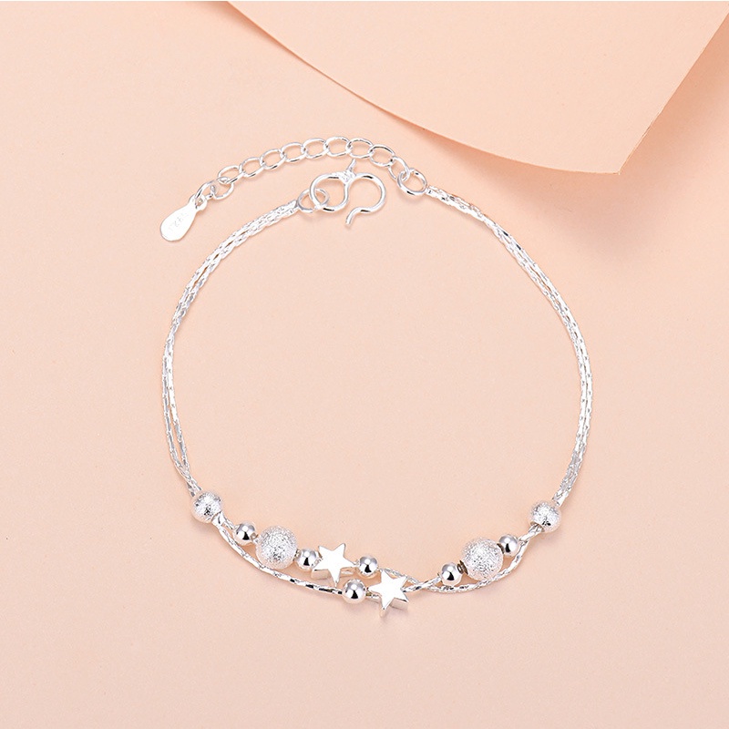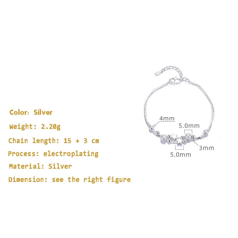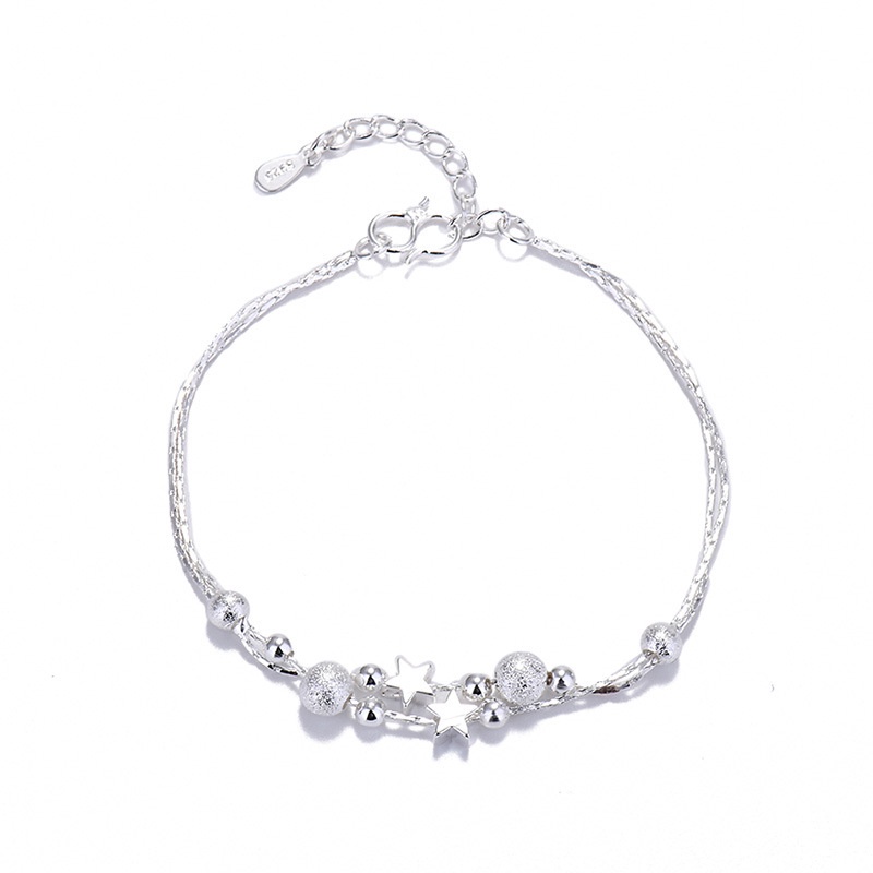 S925 silver round bead hand bracelets plated for women Hypoallergenic 003b