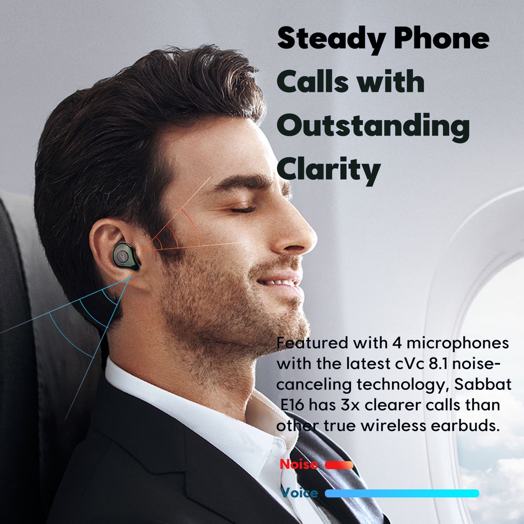 SABBAT E16 BA+DD True Wireless Bluetooth 5.2 In-Ear Earphones Earplugs HIFI Music Sports TWS Noise Cancelling Headphones Earbuds