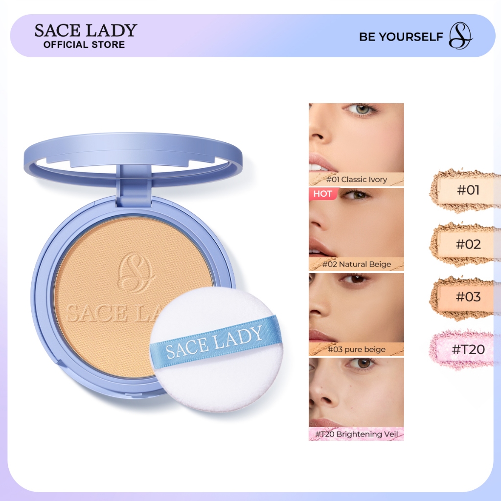 SACE LADY Face Powder Lasting Waterproof Oil Control Matte Flawless Pressed Powder Face Makeup 2Pcs