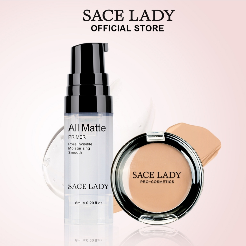 SACE LADY Makeup Set Foundation Primer+Matte Concealer Cream Travel Size [Smooth,All-matte Finish,Full Coverage]