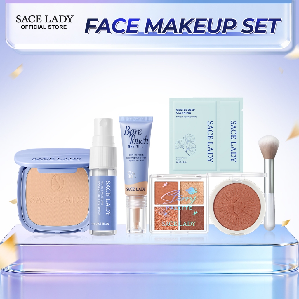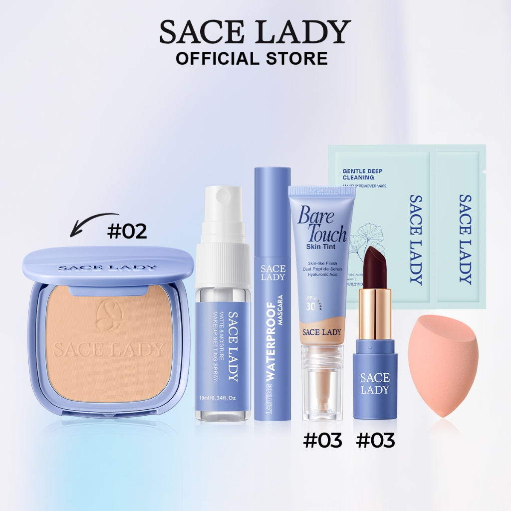 SACE LADY Makeup Set Waterproof Face Powder+Matte Lipstick+Smooth Foundation+Lasting Eyebrow Waterproof Eyeliner Mascara 8PCS