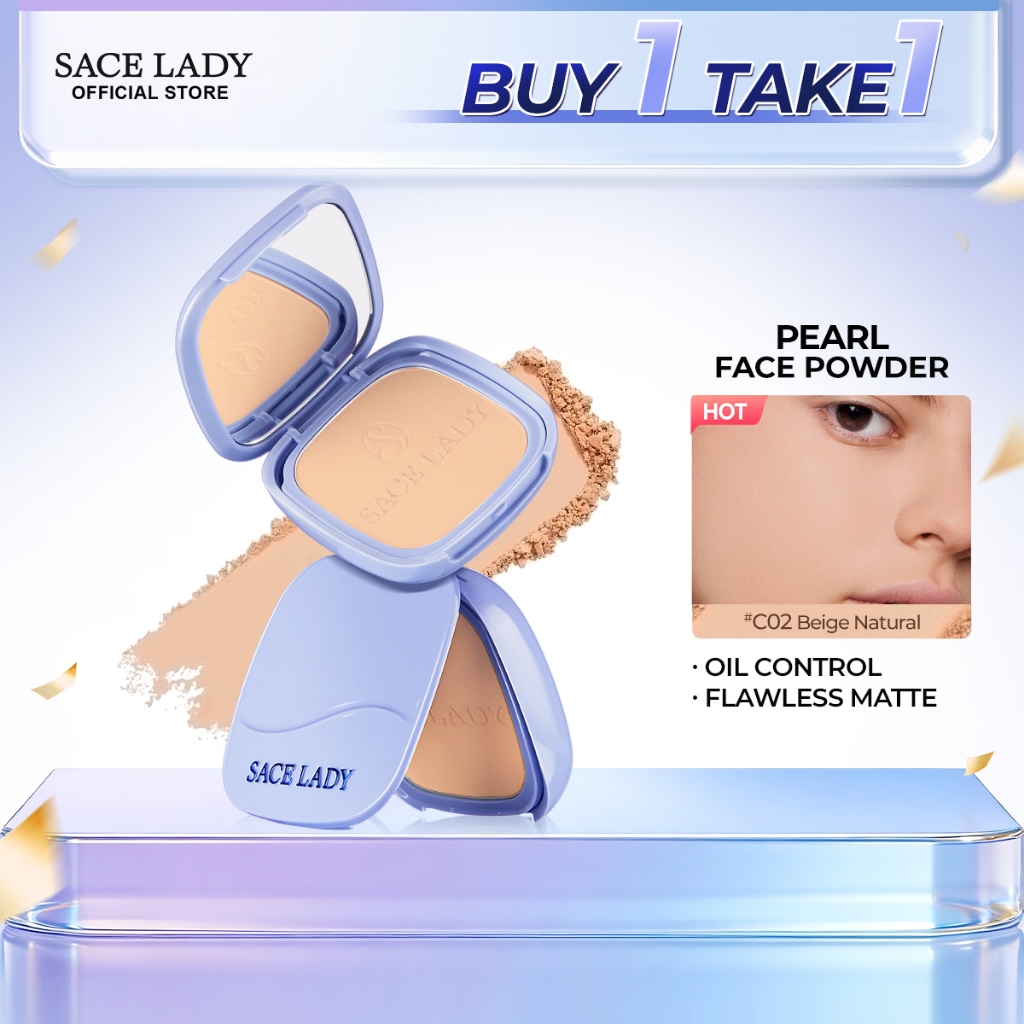 SACE LADY Pearl Oil Control Waterproof Face Powder SPF 30 PA +++ Powders Long Lasting Flawless Master Setting Face Makeup With Mirror