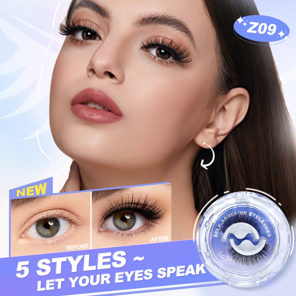SACE LADY Self-Adhesive Eyelashes Long Curling No Glue Faux Lashes Curly Natural-Looking Makeup