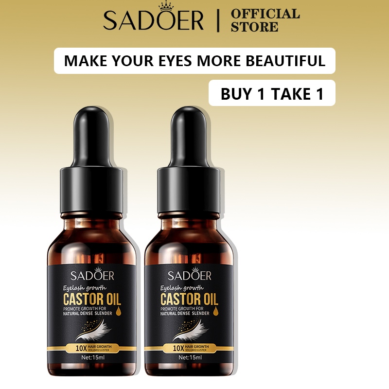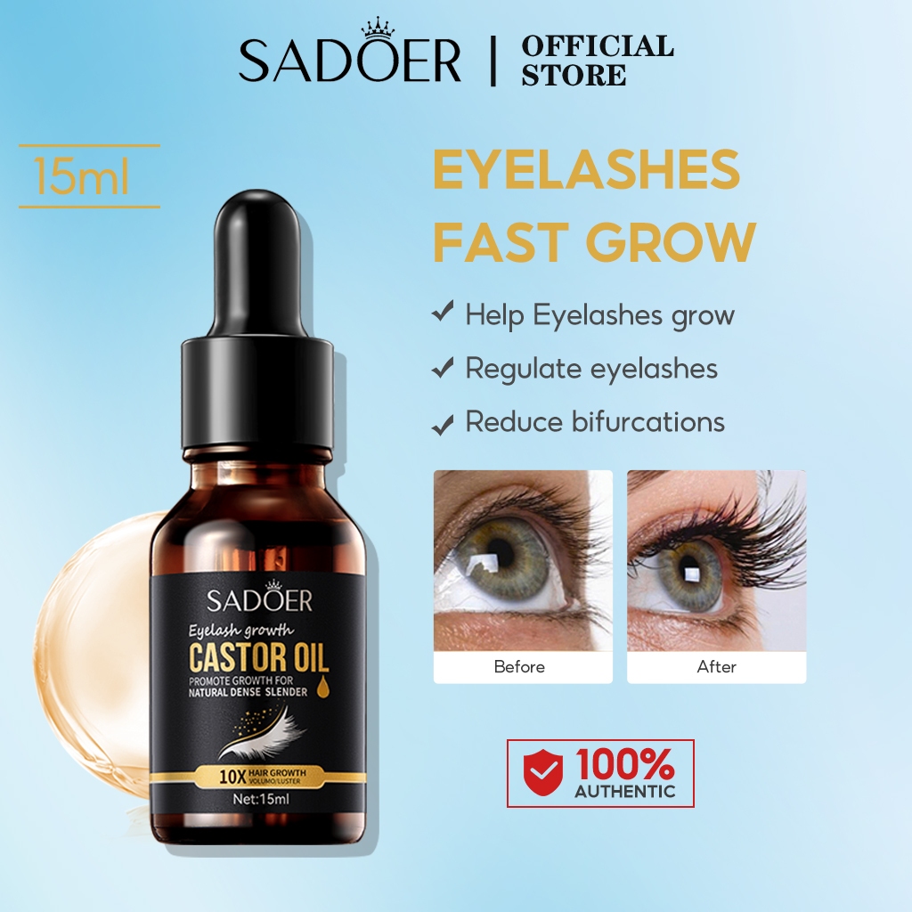 SADOER Natural Castor Oil Hair Eyelash and Eyebrow Lashes Growth Serum 15ml