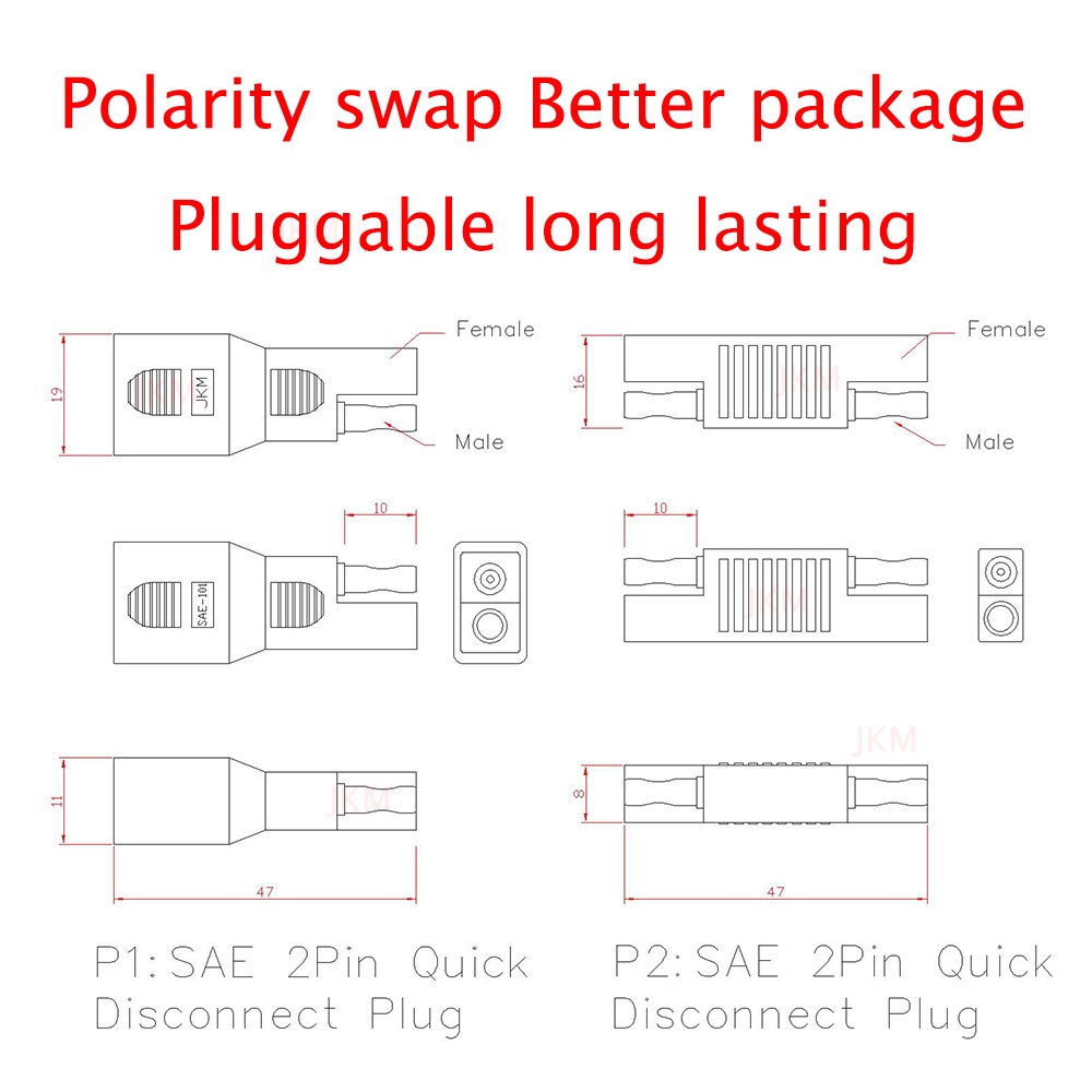 SAE Conversion Plug Reverse Turn Positive Negative Polarity Solar Panel Male Female Adapter
