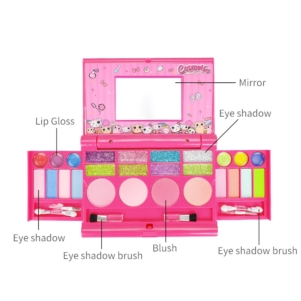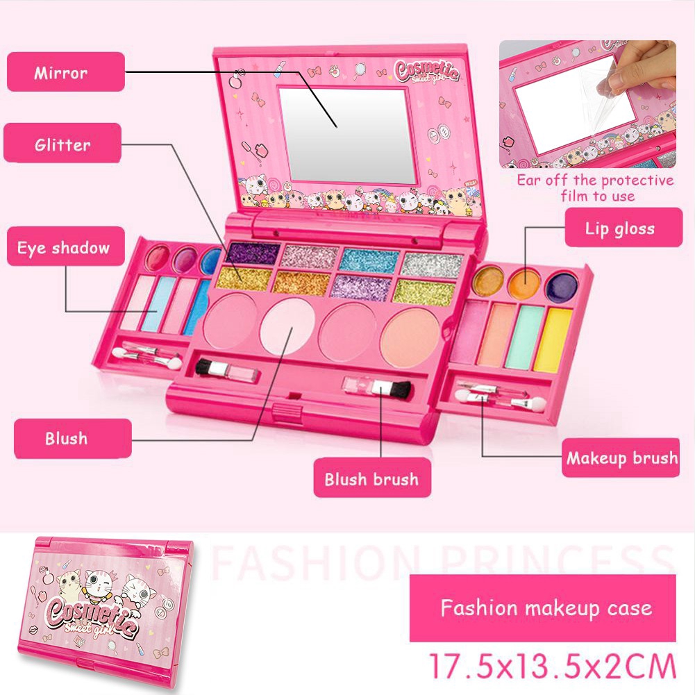 SAFETY TESTED- NON TOXIC Princess Girls Makeup Kit, Fold Out Makeup Palette Cosmetics Play Set Ultimate Kids Facical Makeup Laptop Palette