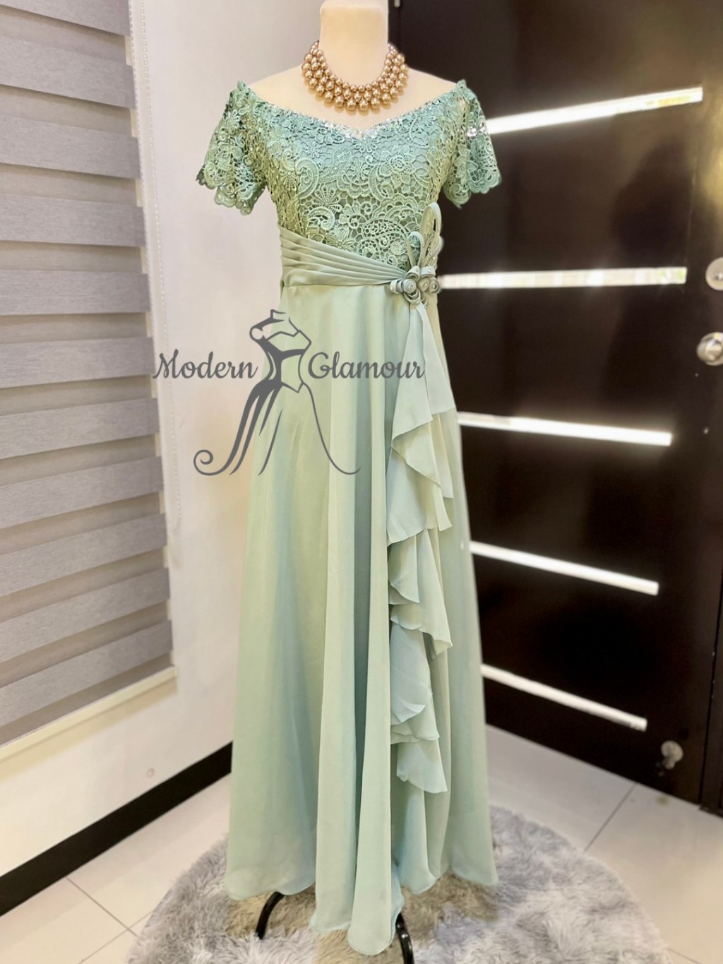 SAGE GREEN MOTHER DRESS NINANG PRINICIPAL SPONSOR GOWN FORMAL EVENT GOWN