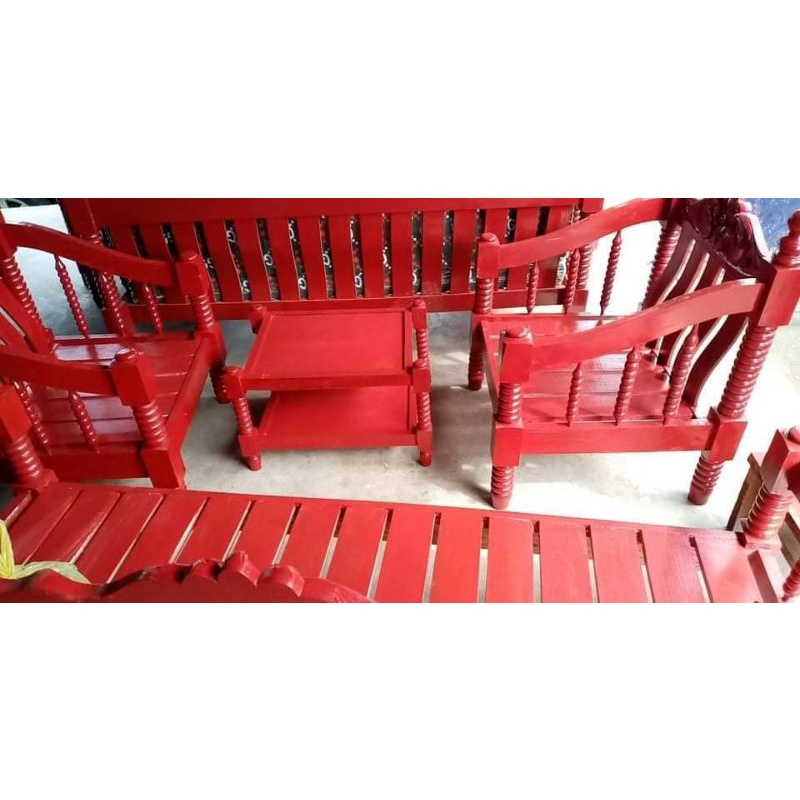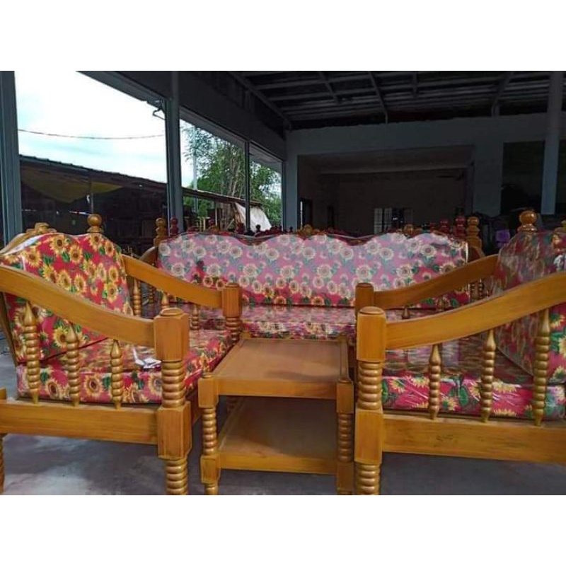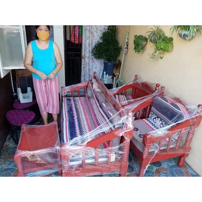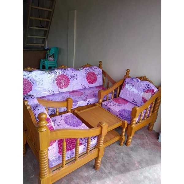 SALA SET WOOD WITH CUSHION URATEX AND CENTER TABLE