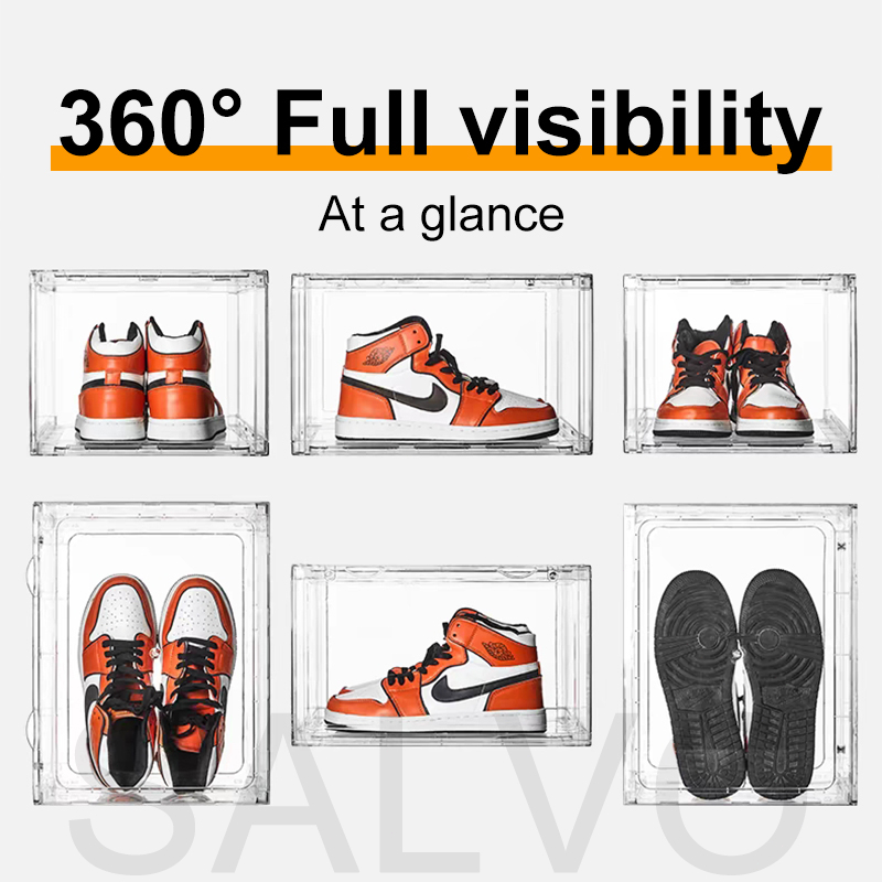 SALVO Acrylic Shoe Box Shoe Storage Box Storage Organizer Stackable Magnetic Shoe Rack With Cover