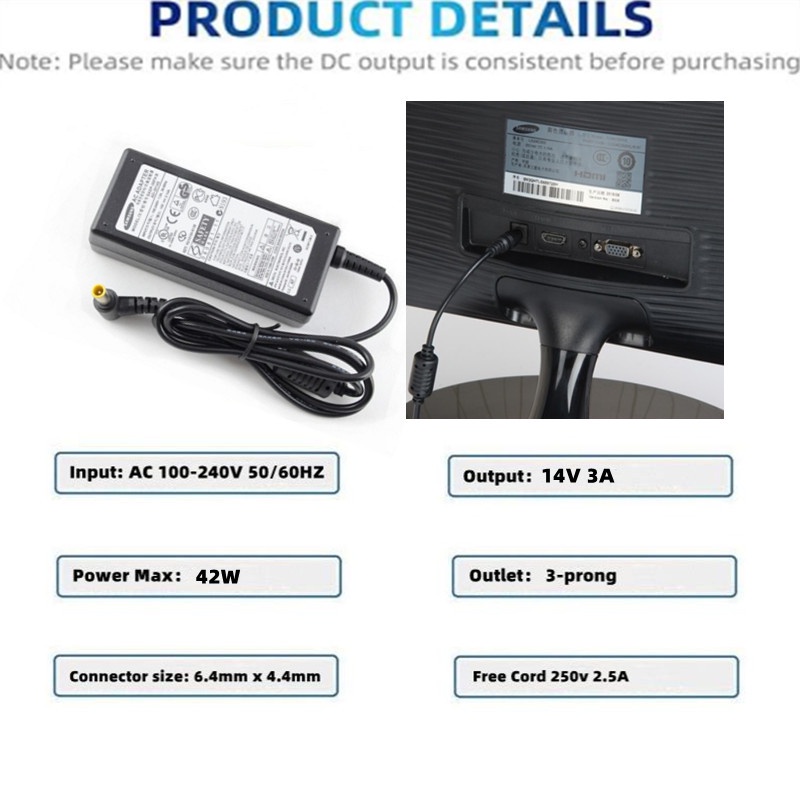 SAMSUNG SA300 14V 3A 42W AC ADAPTER Charger compatible 1.78A For Samsung SyncMaster LCD LED Monitor