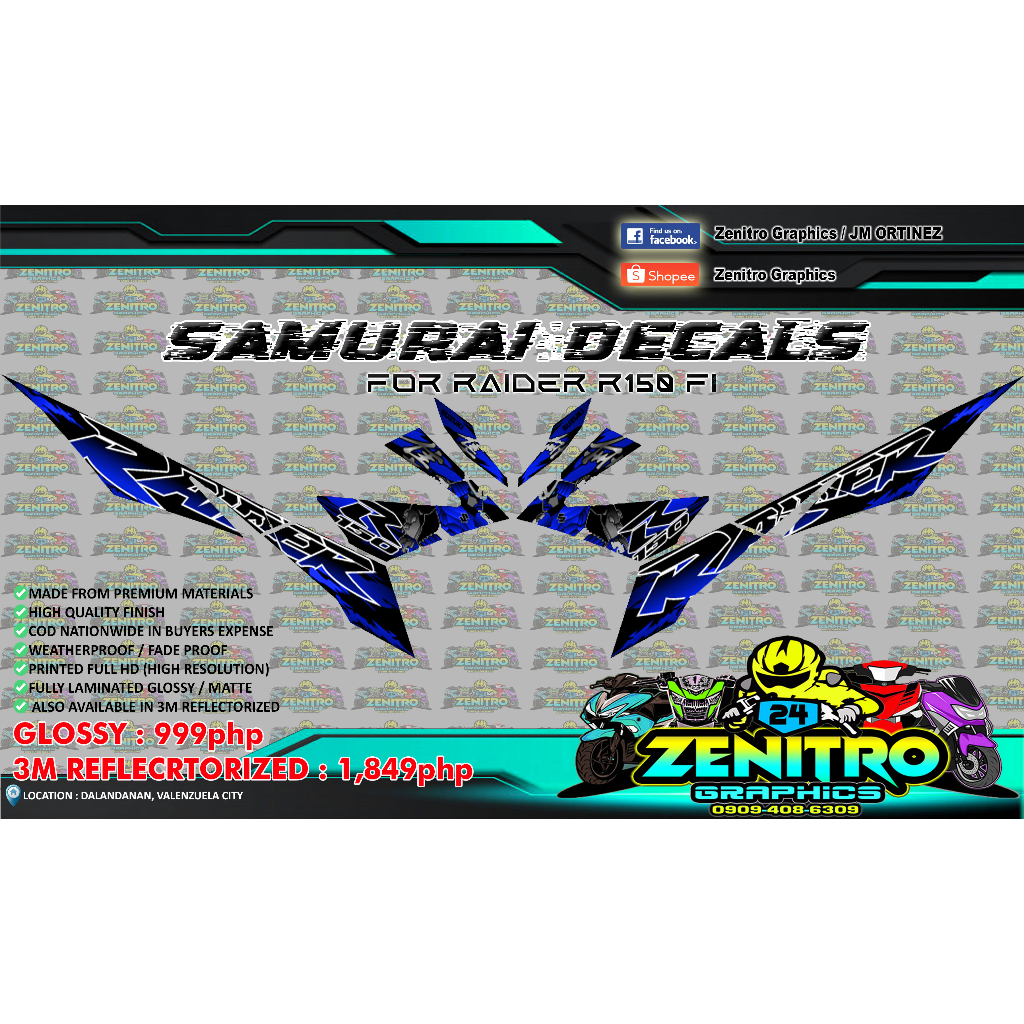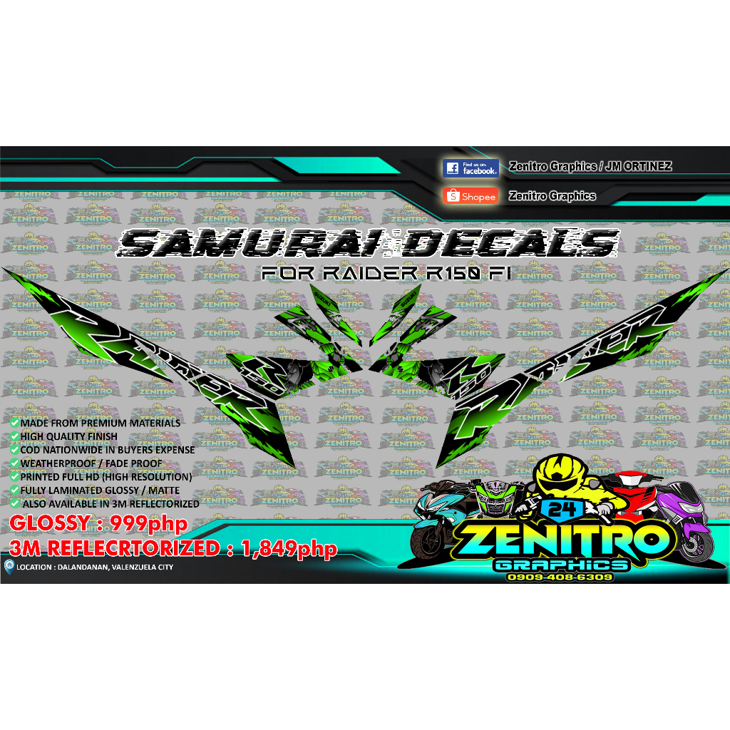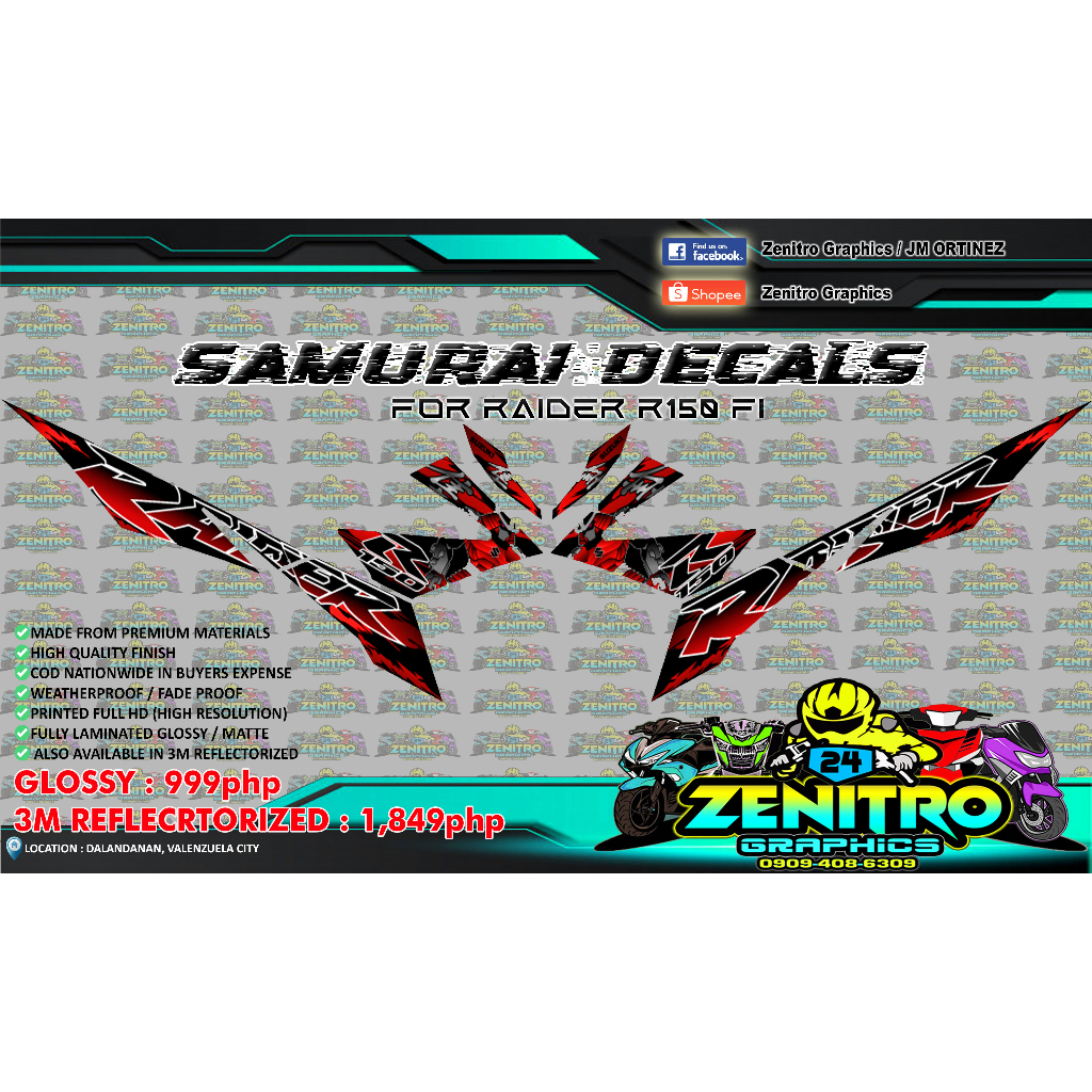 SAMURAI DECALS FOR RAIDER R150fi (ZENITRO GRAPHICS)