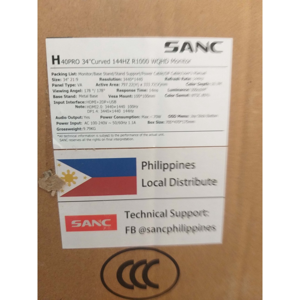SANC 34INCH M3461UPB 144HZ CURVED R1000 WQHD MONITOR WITH RGB LIGHT