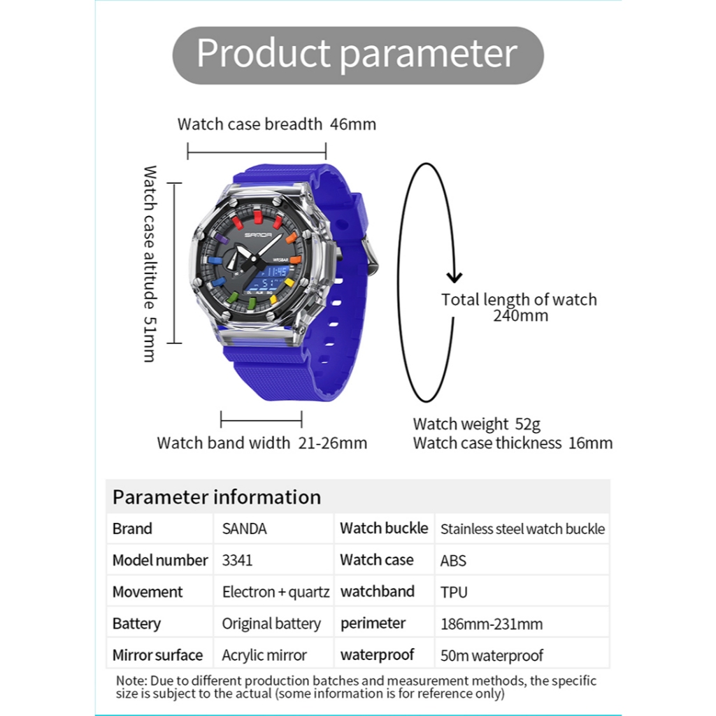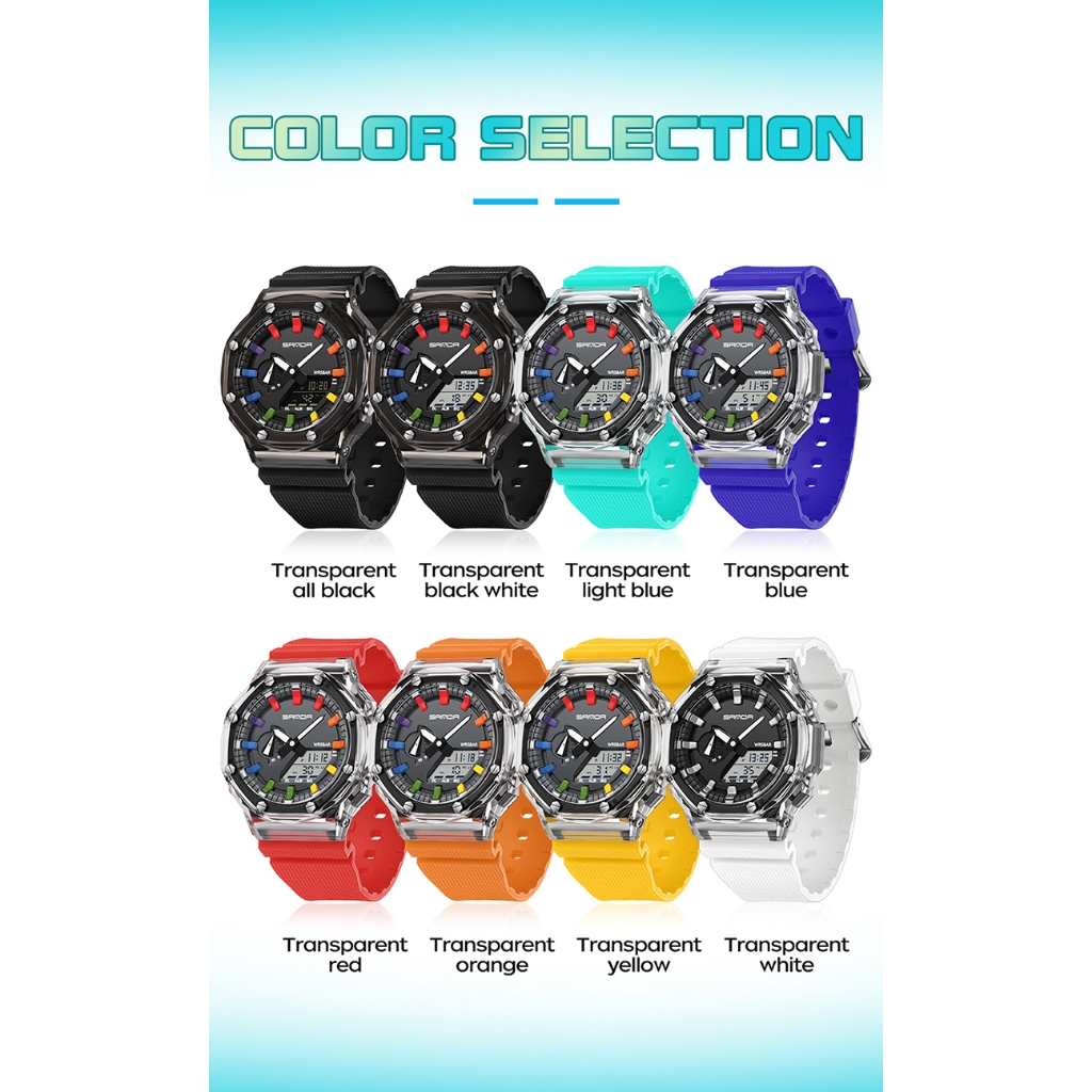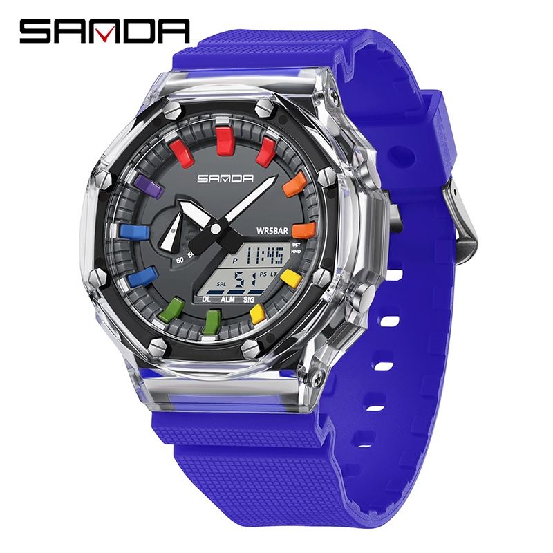 SANDA 3341-2/in stock New Transparent Series Stylish and Simple Waterproof Luminous Electronic Men Watch