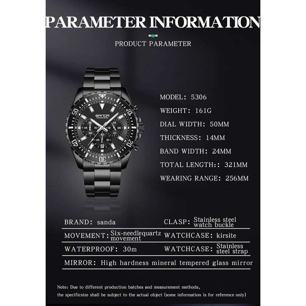 SANDA 5306 Successful Men's Outburst Charm Quartz Watch Business Reflects Temperament Luxury Watch
