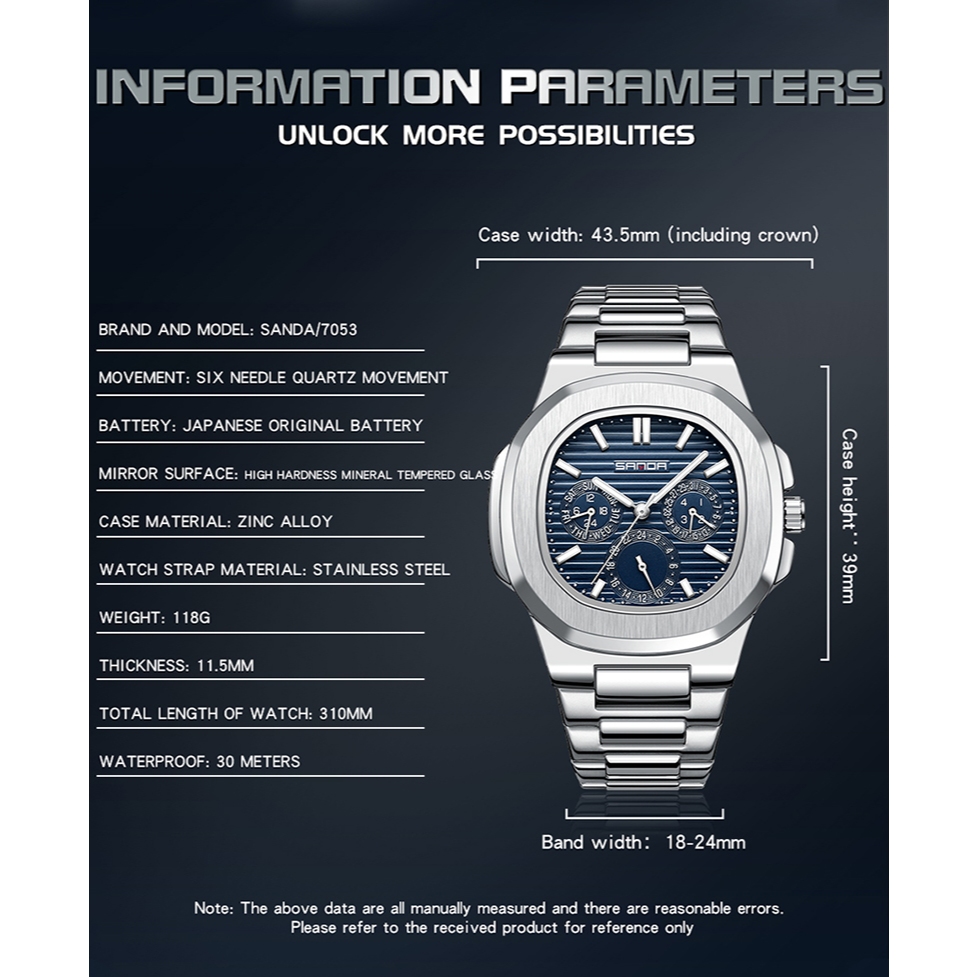 SANDA 7053/in stock Simple Luxury Personalized Fashion Stainless Steel Waterproof Fall Arrest Sports Men's Watches