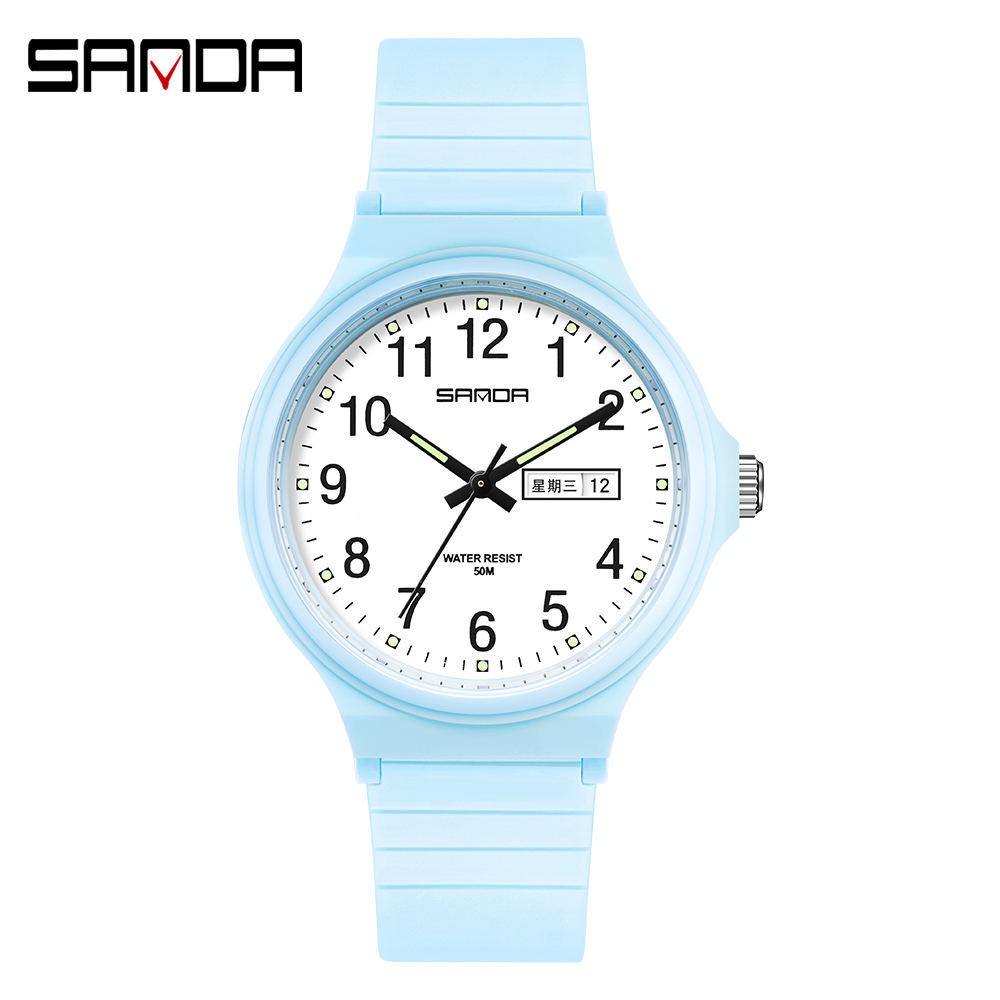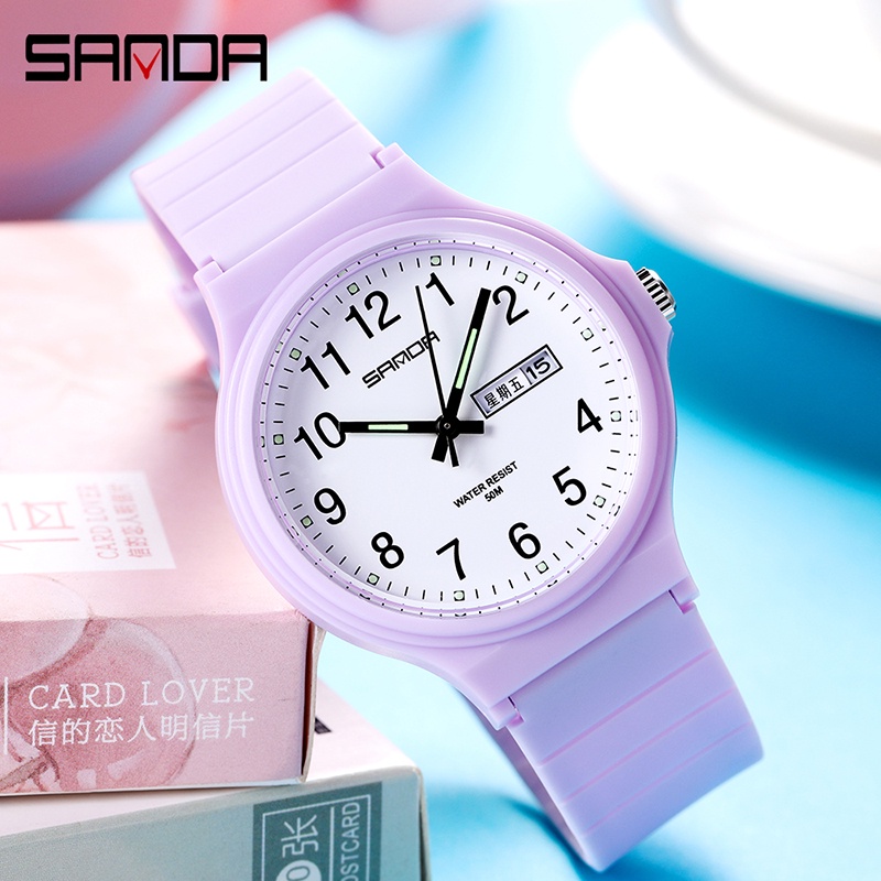 SANDA Fashion Simple Women Watch Calendar Week Display Outdoor Sports Waterproof Electronic Quartz Watch 6060-2