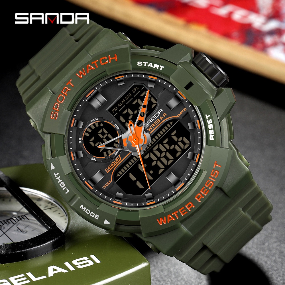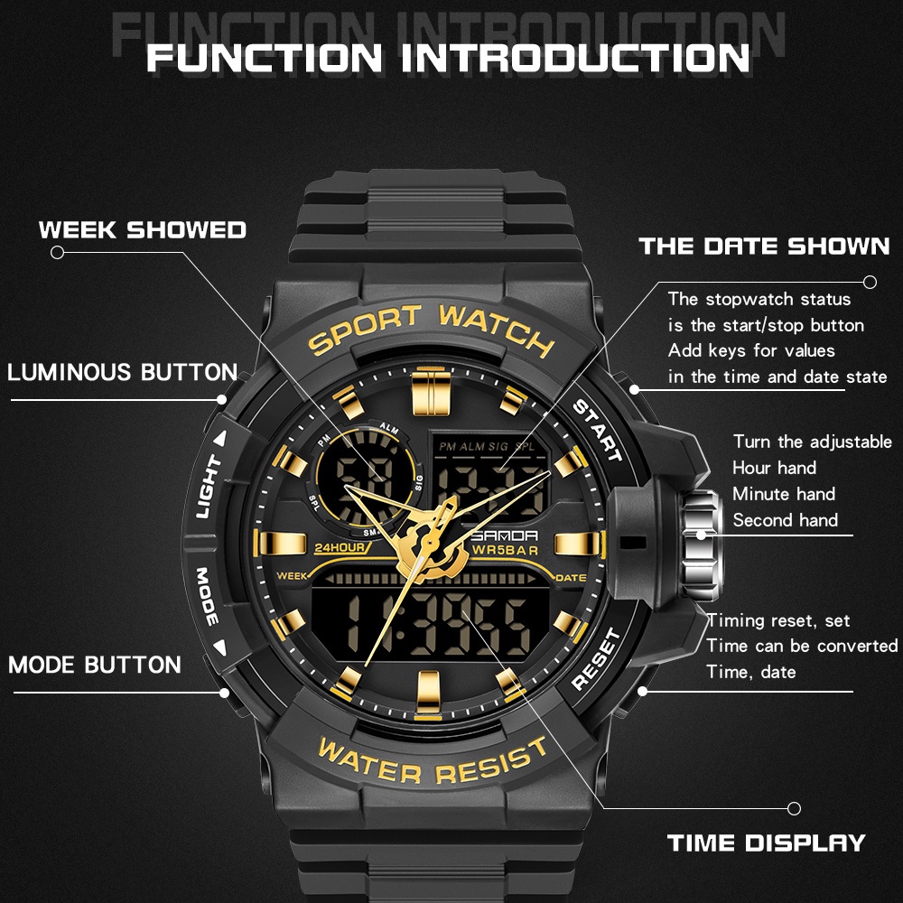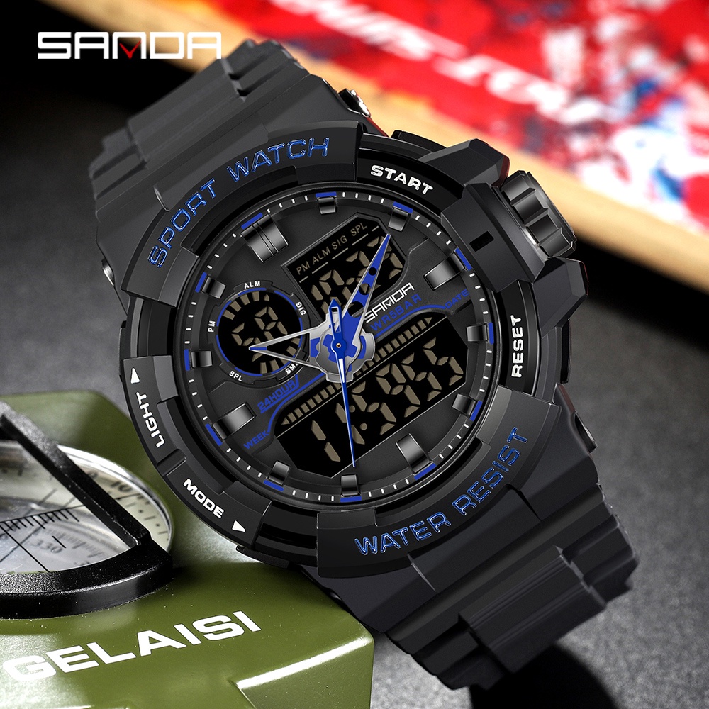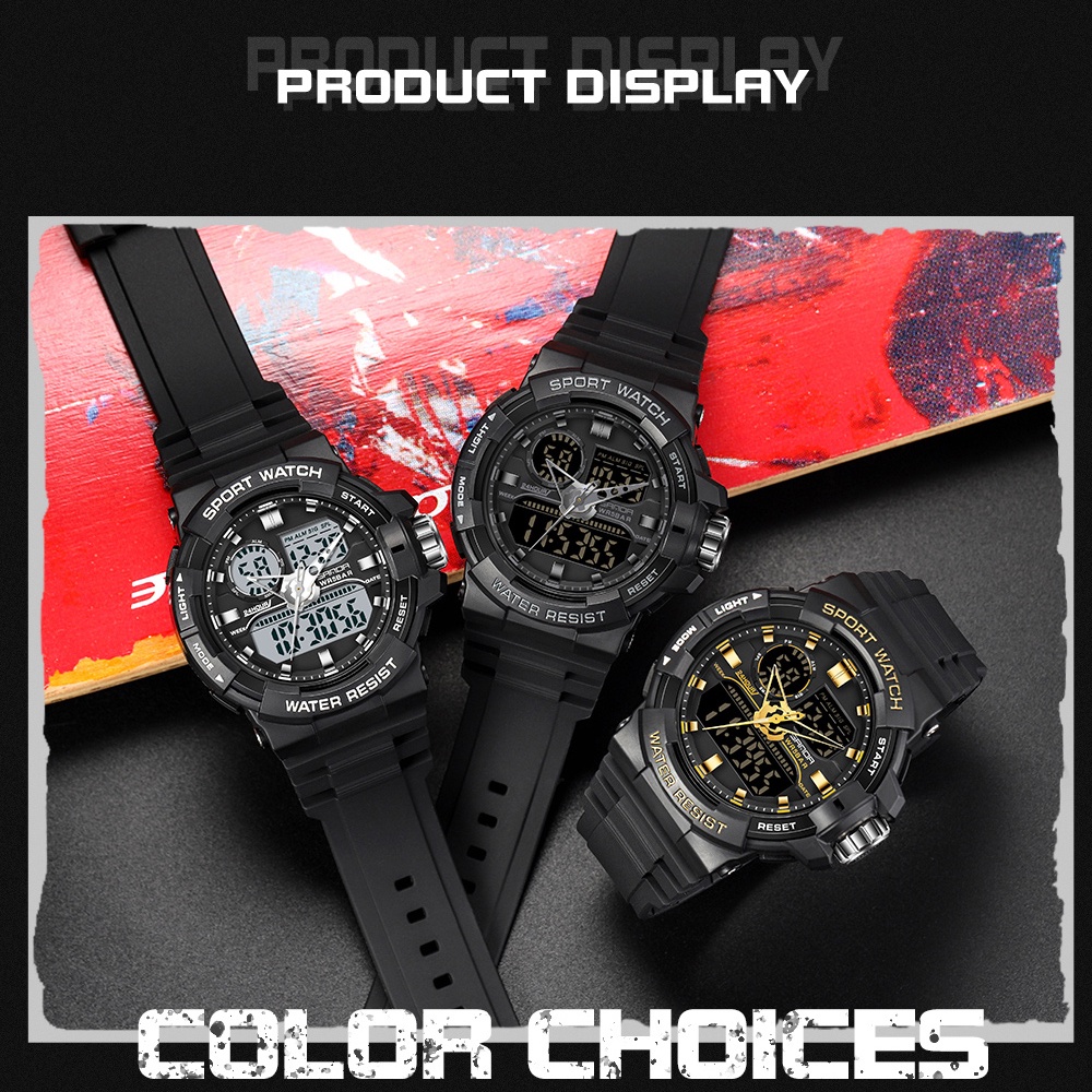 SANDA Men's Dual Display LED Digital Watch Luminous Cool Personality Quartz Watch You Deserve 6025-9