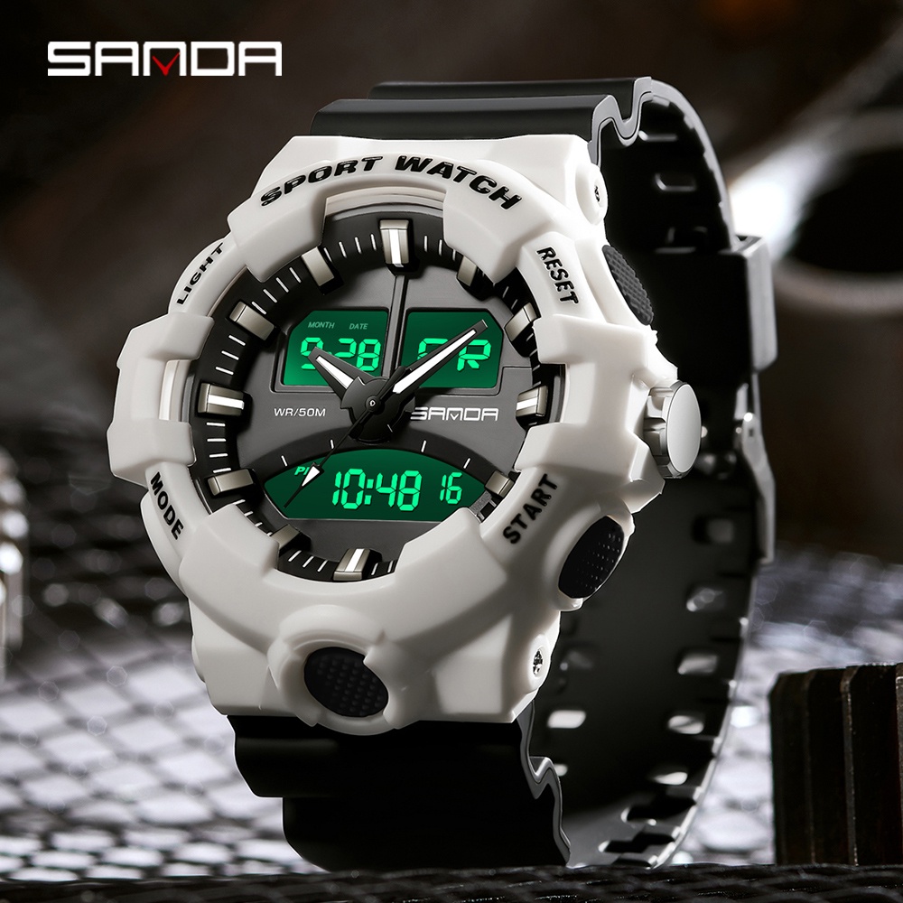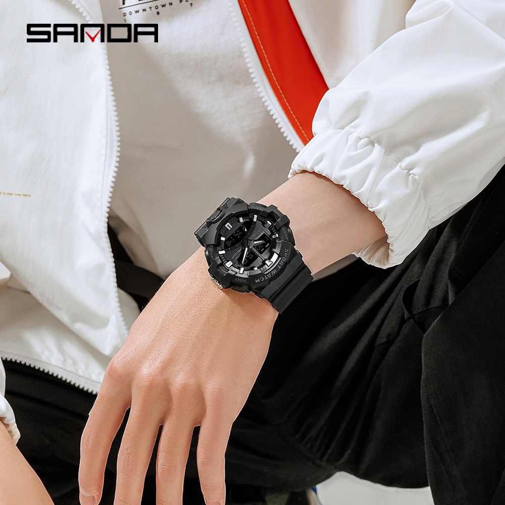SANDA Men's Watch Dual Display LED Digital Watch Calendar Chronograph Luminous Quartz Watch 3130-5