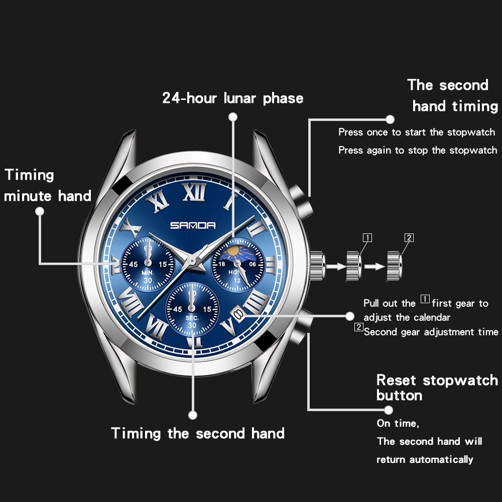 SANDA Successful Men Must Burst Out Charm Quartz Watch Business Boss Reflects Temperament Luxury Watch P5012/10