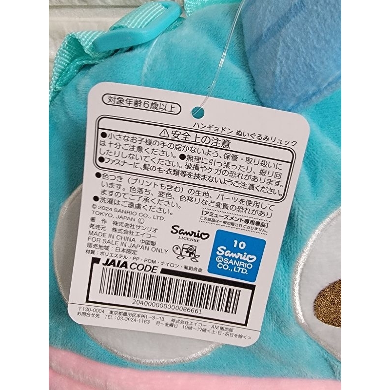 SANRIO HANGYODON KIDDIE PLUSH BACKPACK