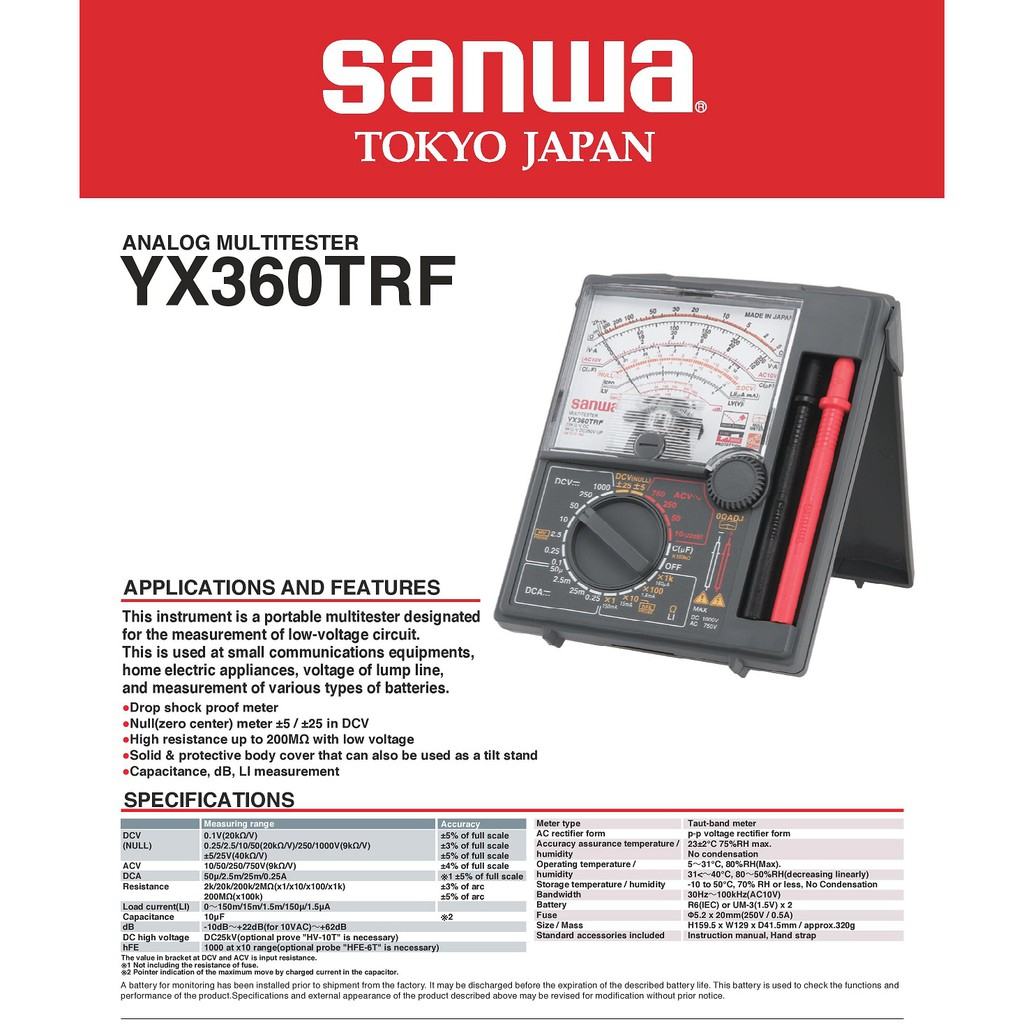 SANWA Standard Electrical Tester Electrical Analog Multimeter Tester Lamp Meter Tester Voltmeter