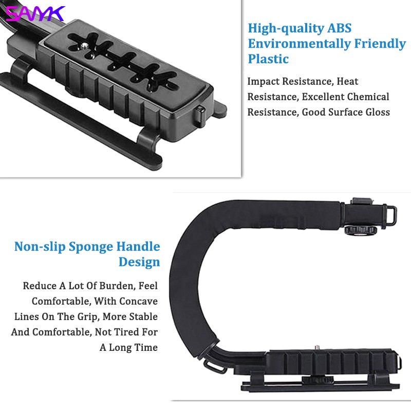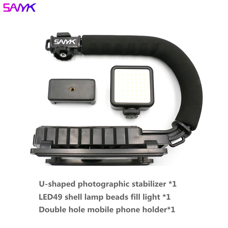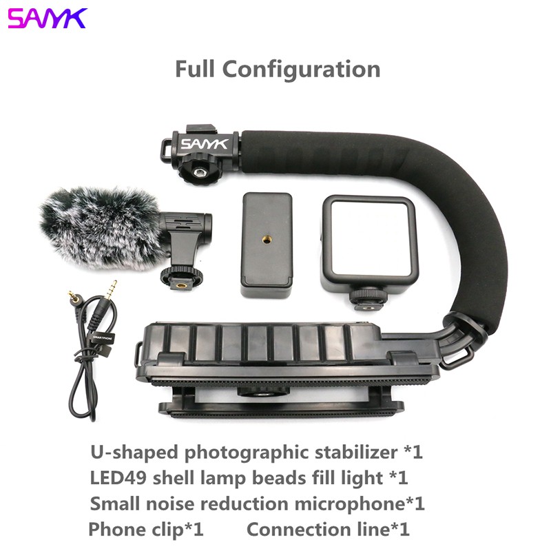 SANYK U Shape Phone Holder Camera Holder Bracket Vlog Kit Handle Vlogging Gimbal Stabilizer Grip Holder with 1/4 Inch Screw Cold Shoe Mount for DSLR SLR Camera DV Camcorder With Led Light Noise Cancellation Mic