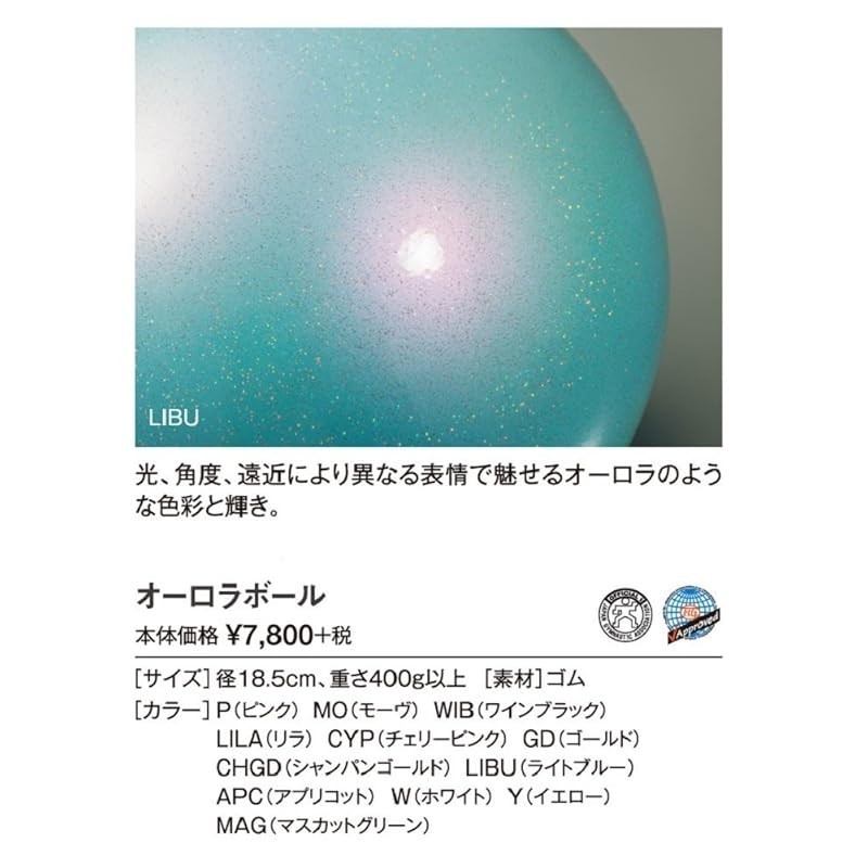 SASAKI Rhythmic Gymnastics Ball, International Gymnastics Federation certified, Japan Gymnastics Association certified, Aurora Ball, diameter 18.5cm, M-207AU-F LIBU (light blue)