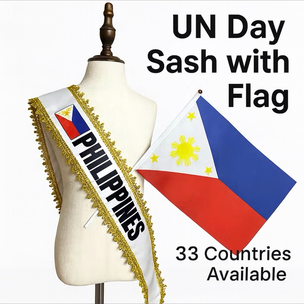 SASH WITH FLAGLET FOR UNITED NATIONS| (Wooden & Plastic Stick) | 33 Countries