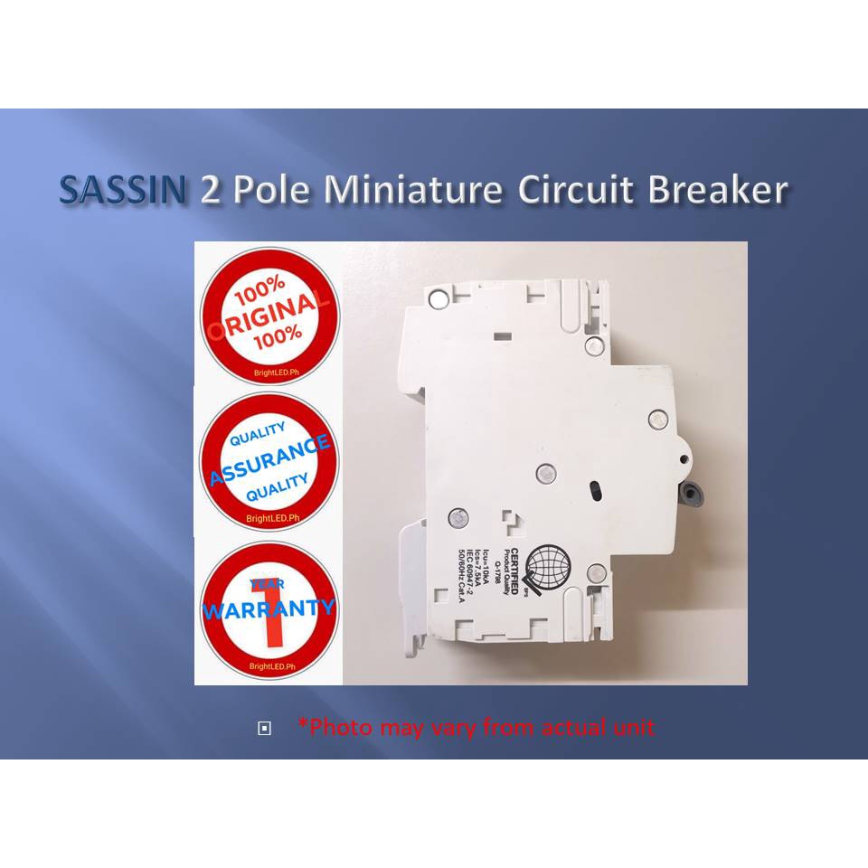 SASSIN 20 AMPERE 2 POLE MINIATURE CIRCUIT BREAKER, 10 KAIC RATING