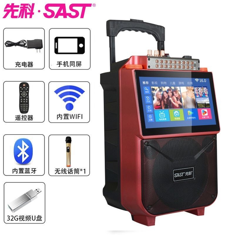SAST Square Dance Audio Outdoor Bluetooth Home Wireless Microphone with Display ScreenKSong Portable Pull Rod Speaker Box