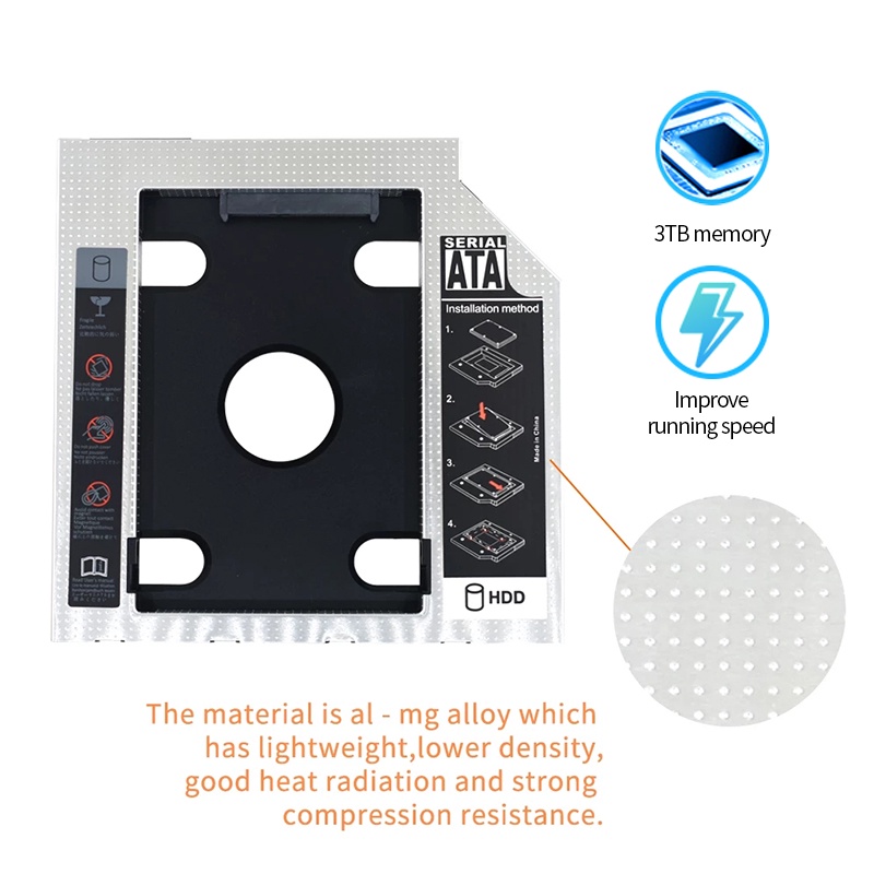 SATA to SATA 2nd HDD Caddy 12.7/9.5mm For 12.7/9.5mm SSD Case Hard Drive Bay Case For Laptop