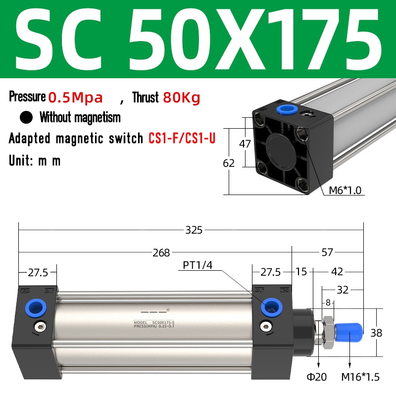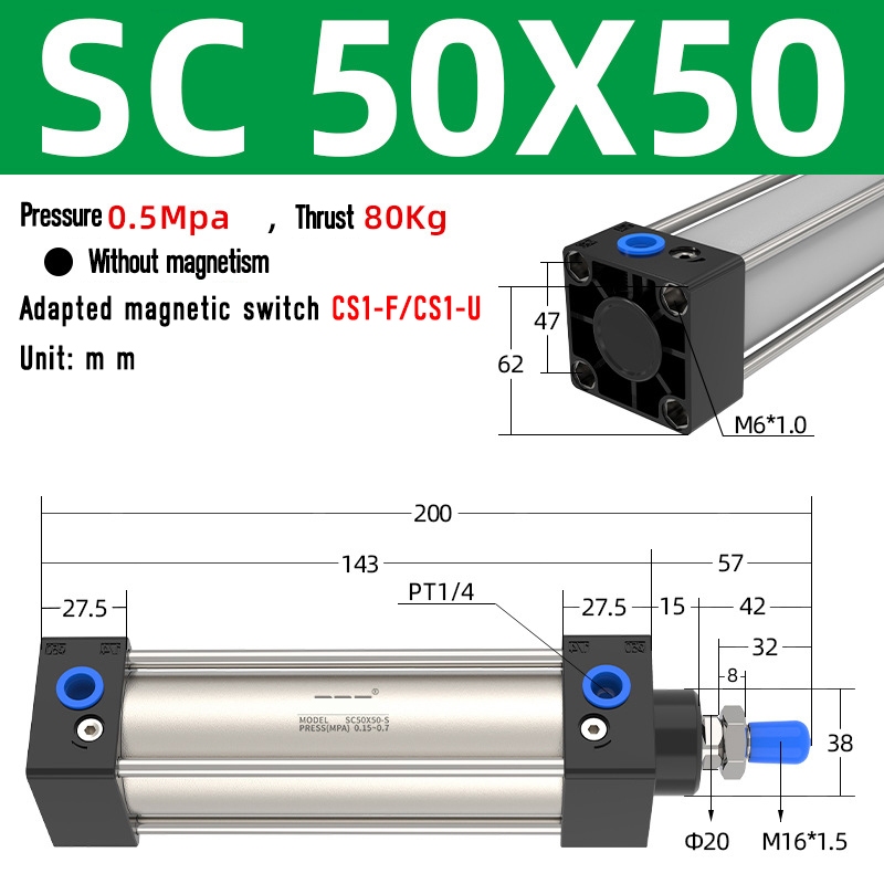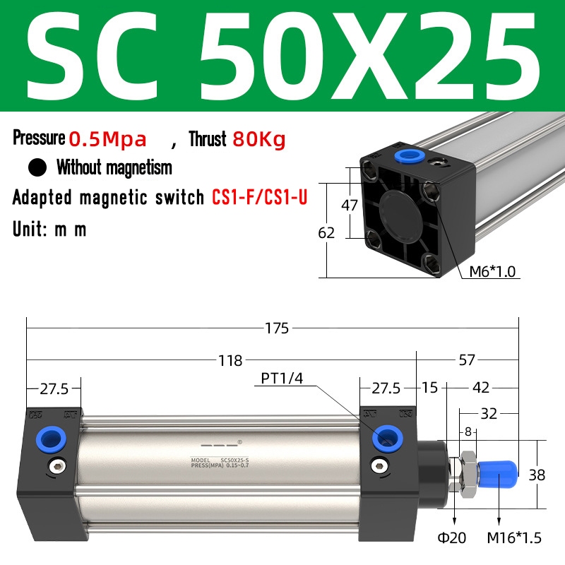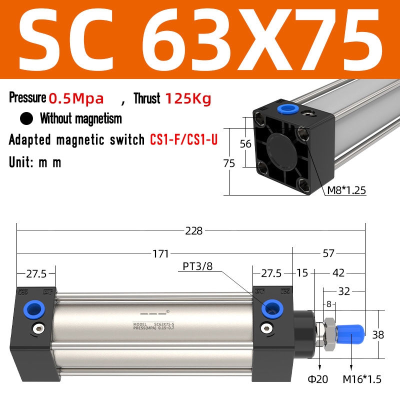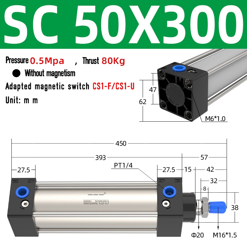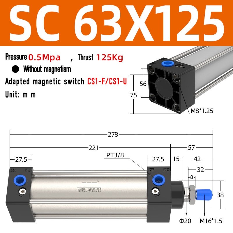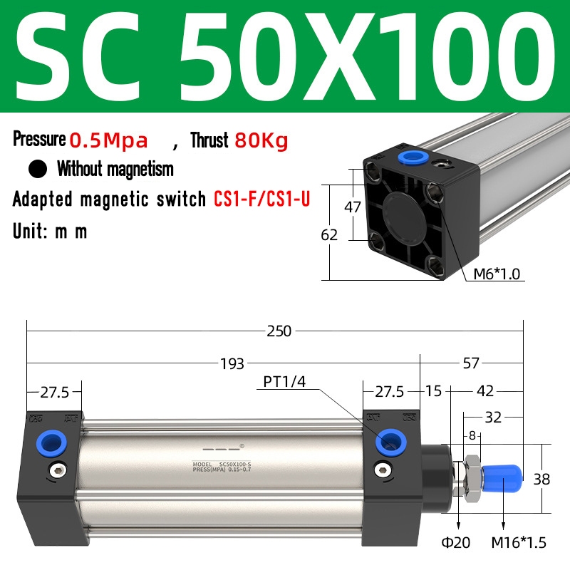 SC Pneumatic air Cylinder SC Series Economy model 50mm 63mm Bore Standard Cylinder ,SC Cylinder , SC Pneumatic Cylinder SC32/40-25X50X75X100X125X150X200X250S