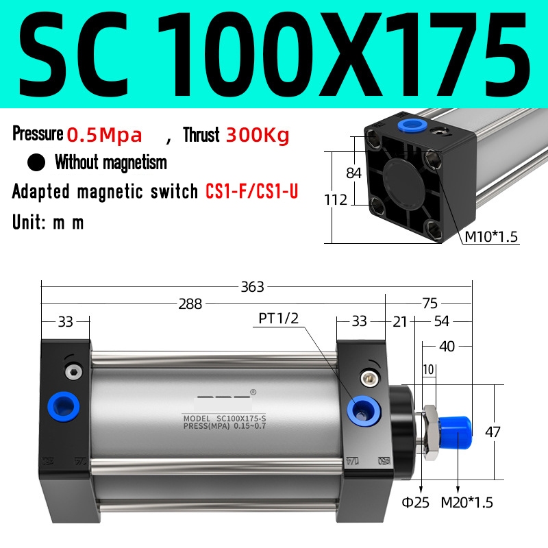 SC Pneumatic air Cylinder SC Series Economy model 80mm 100mm Bore Standard Cylinder ,SC Cylinder , SC Pneumatic Cylinder SC80/100-25X50X75X100X125X150X200X250S