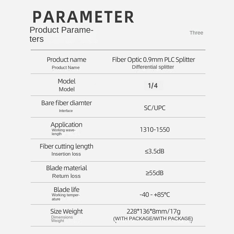 SC UPC 1x8 PLC Splitter SM 0.9mm fiber optic steel minitube type splitter SM 0.9mm 1m FTTH Fiber Optic Splitter SC APC PLC Splitter