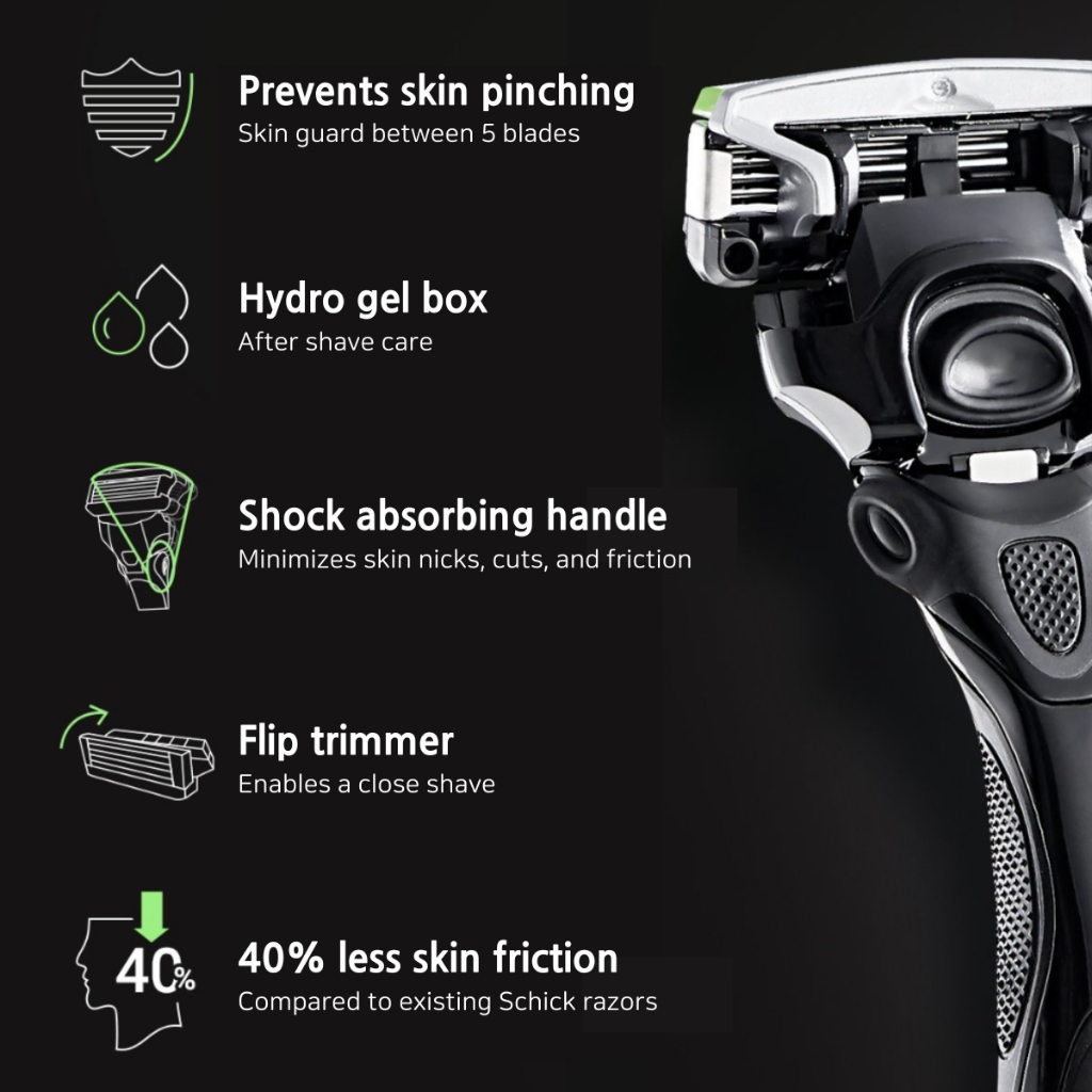 SCHICK Hydro 5 Skin Protect Sensitive Shaver Set 1-handle+11-blade, Precision Razor Gel Box Trimmer