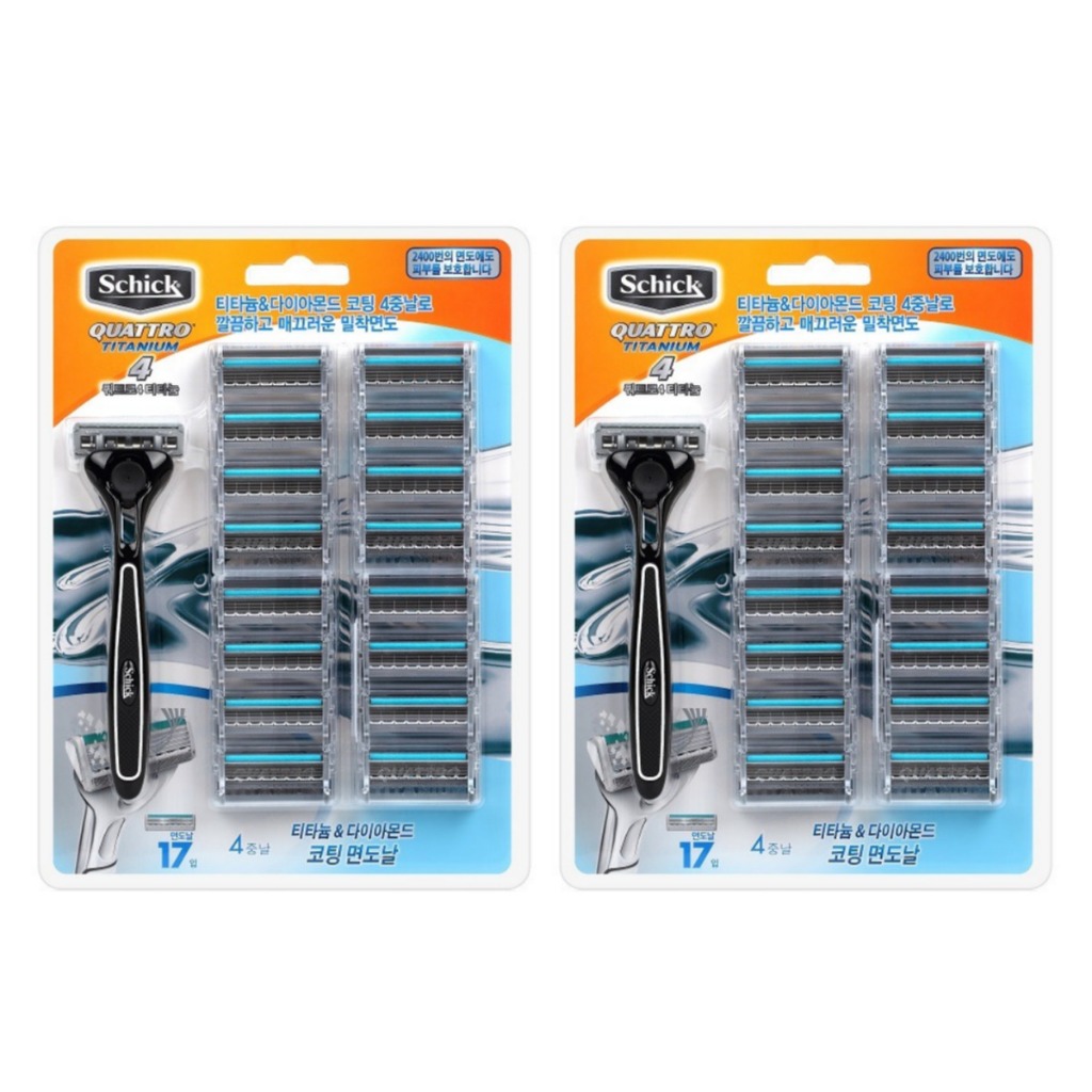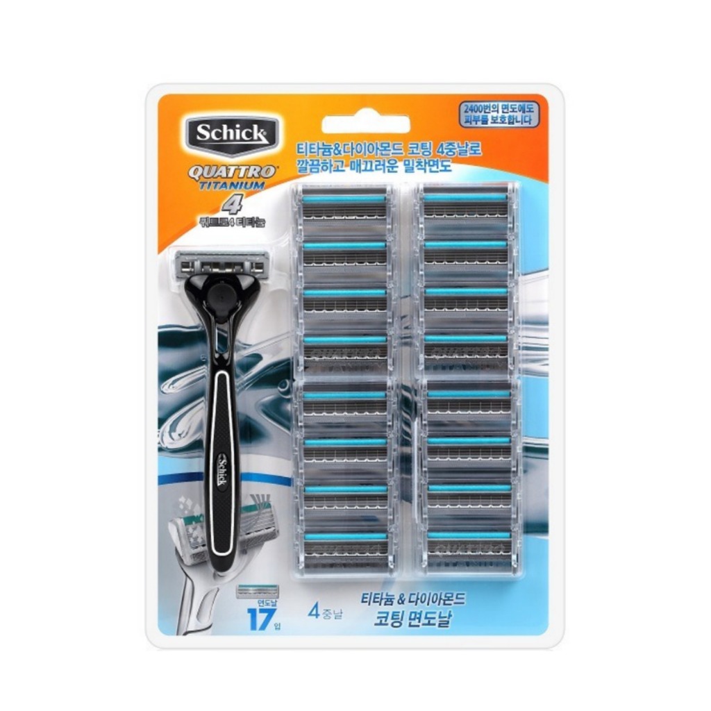 SCHICK Quattro 4 Titanium Razor Blades, 17-blade, 4-layer Blade, Diamond-coated Razor Blades, Skin protection safety net / from Seoul, Korea